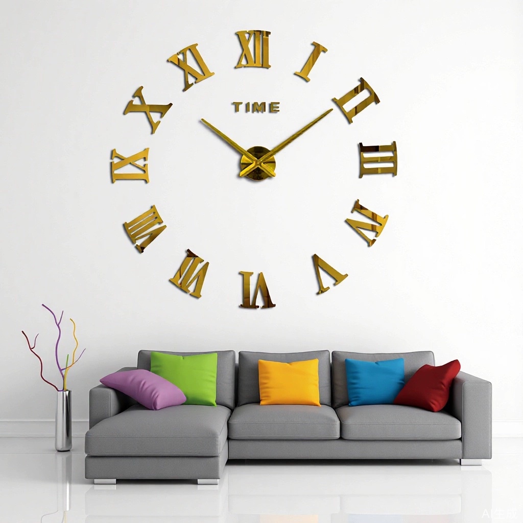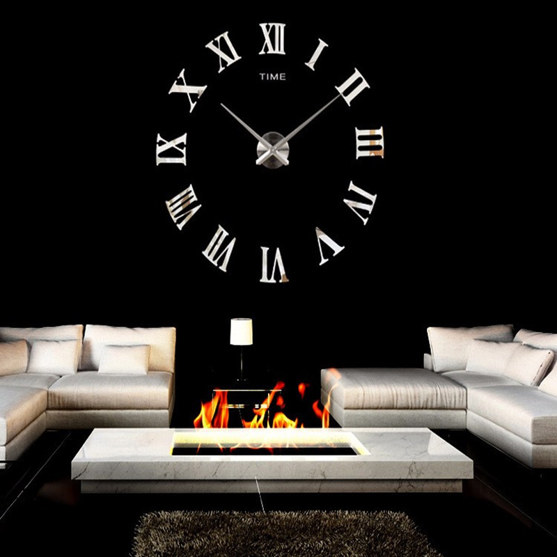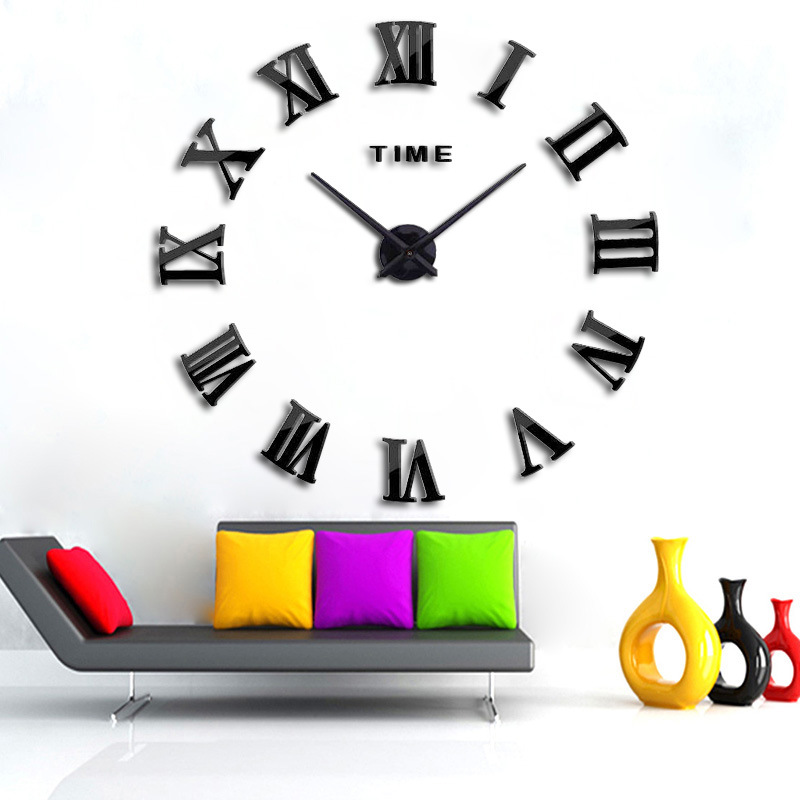 거실 시계 대형 시계 로마 숫자 음소거 diy 벽 시계 간단한 3D 성격 TV 벽 스티커 시계