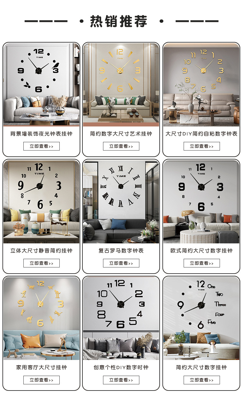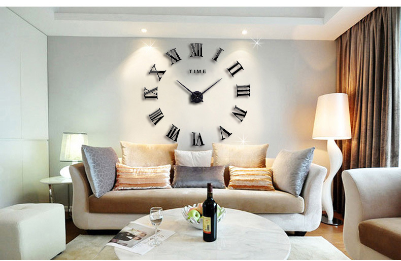 거실 시계 대형 시계 로마 숫자 음소거 diy 벽 시계 간단한 3D 성격 TV 벽 스티커 시계스토어 가기