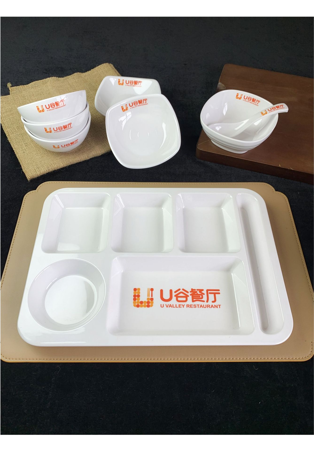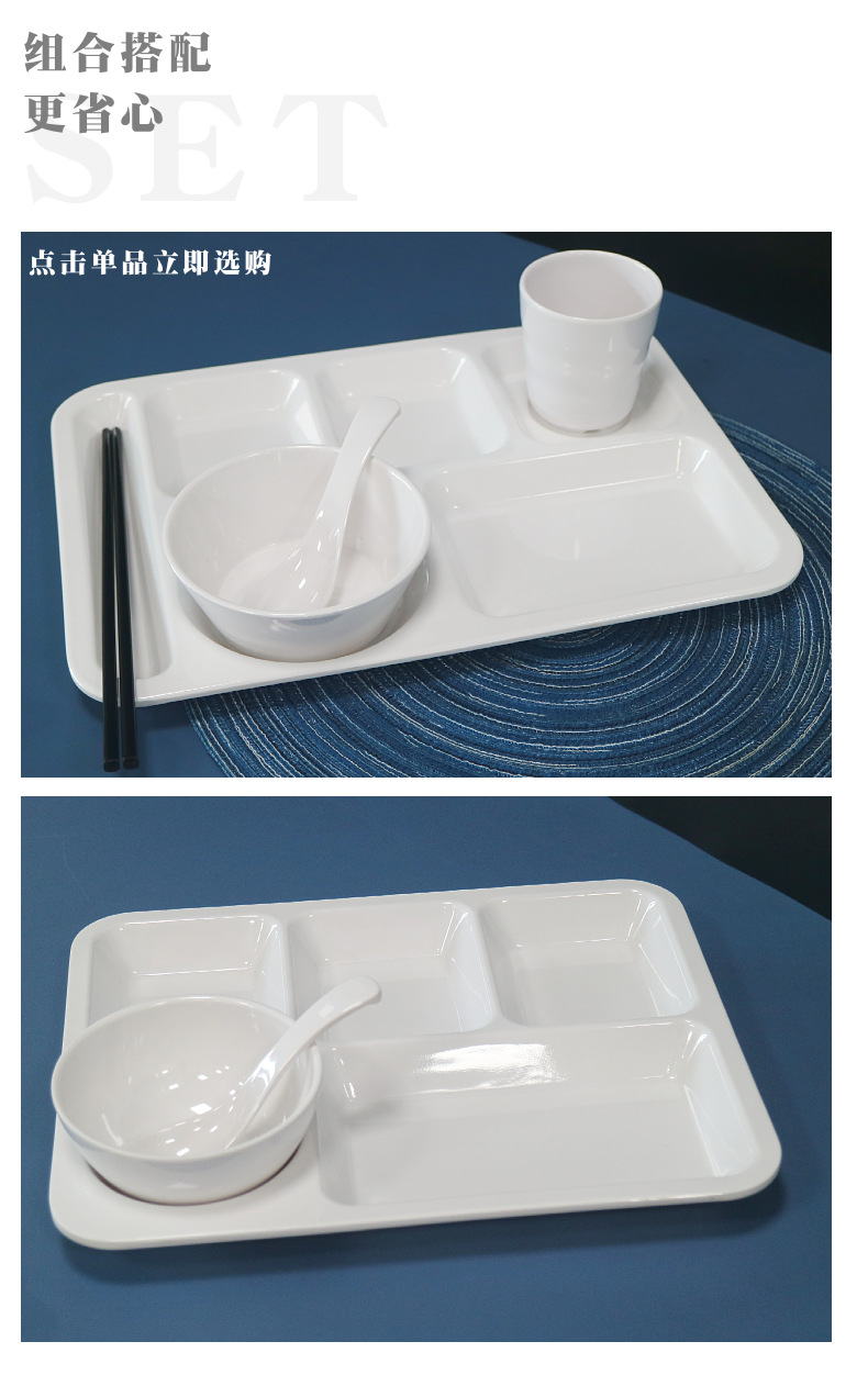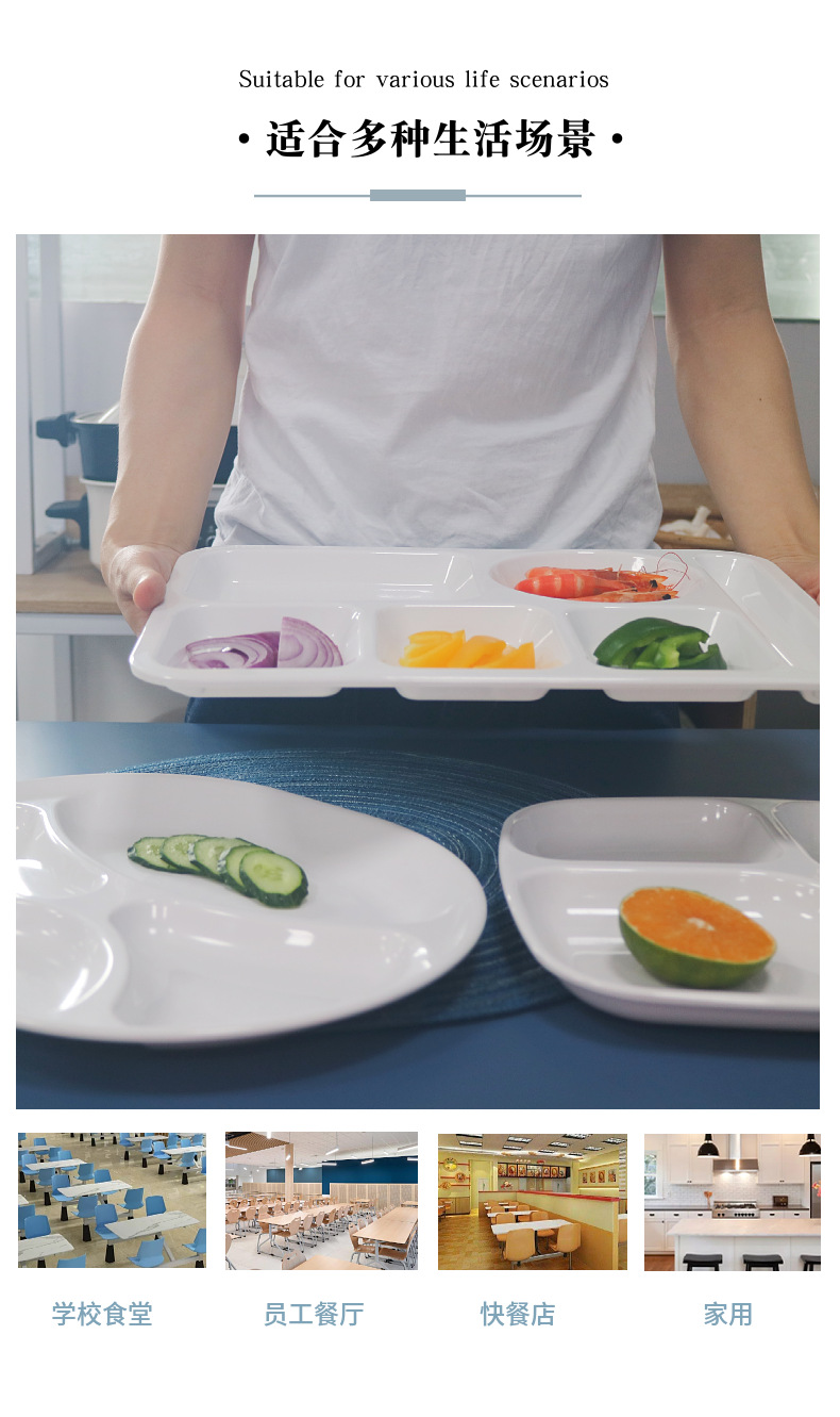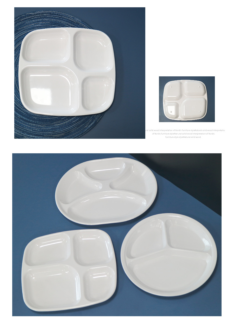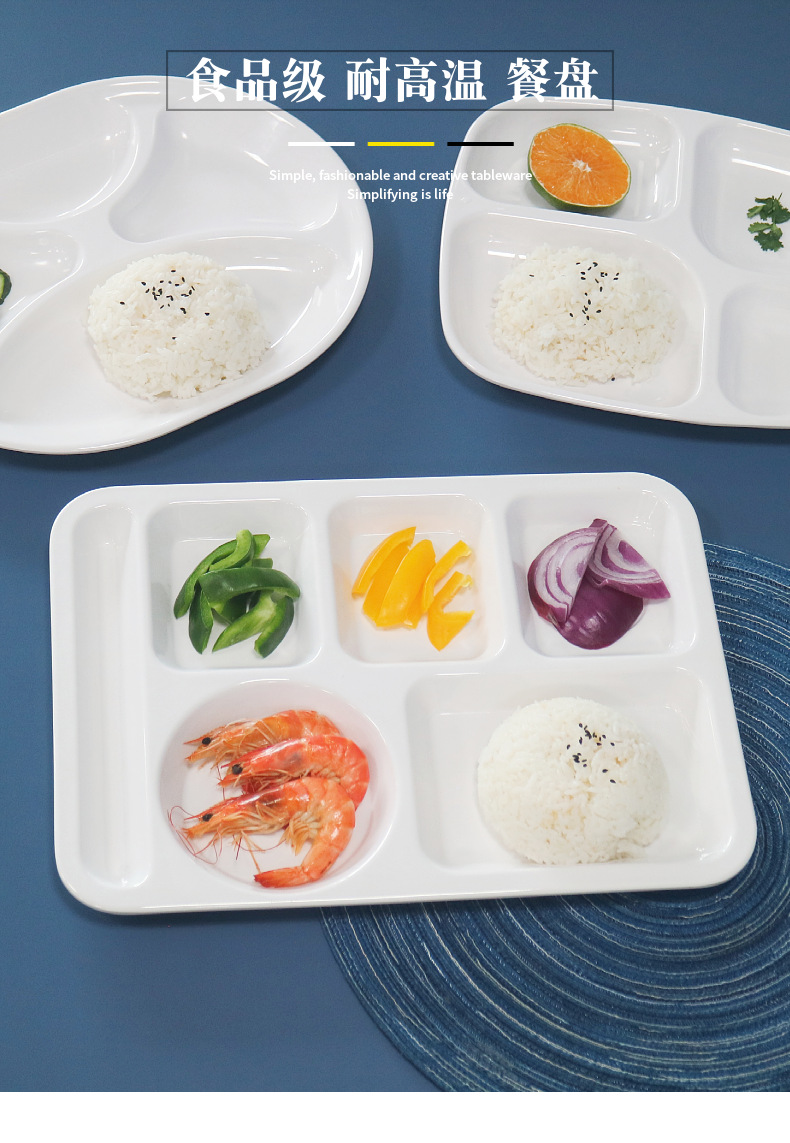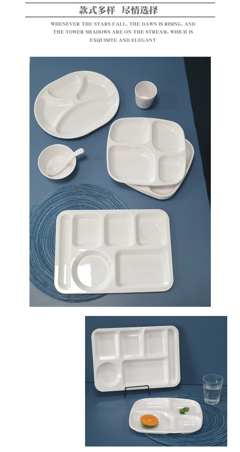 A5 흰색 멜라민 식기 패스트 푸드 접시 학생 캔틴 칸막이 접시 4 칸 6 칸 접시 접시 세트 도매스토어 가기