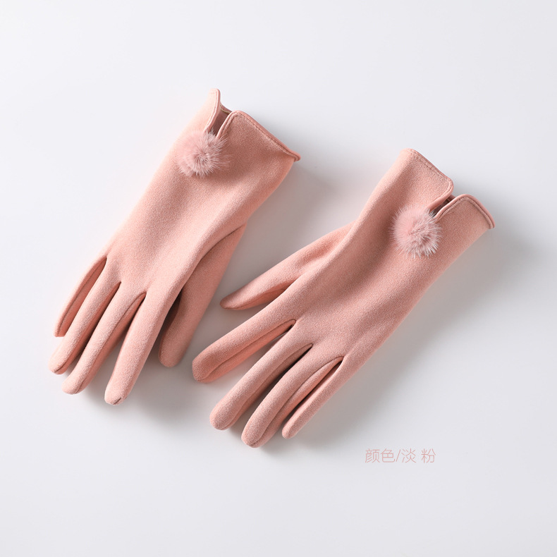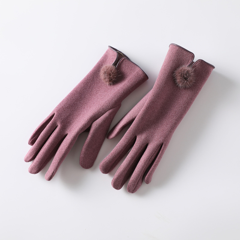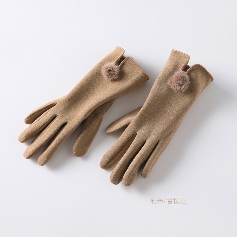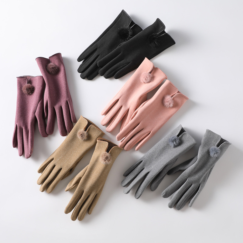 터치 스크린 벨벳 토끼 모피 볼 장갑 여성용 사이클링 따뜻한 야외 운전 장갑 여성용 기모 사이클링 겨울 장갑