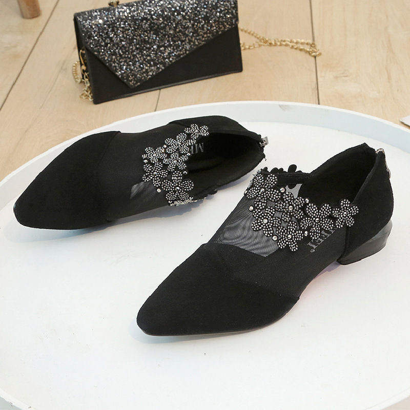 외국 무역 플러스 사이즈 두꺼운 뒤꿈치 메쉬 통기성 신발 여성의 2022 새로운 메쉬 중공 모조 다이아몬드 발가락 샌들의 한국 버전스토어 가기