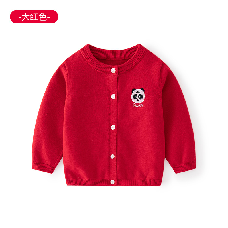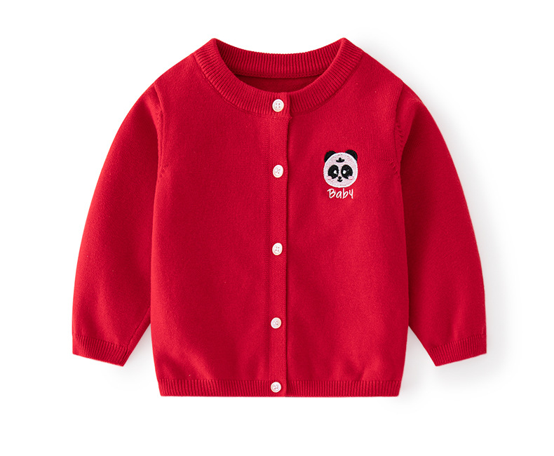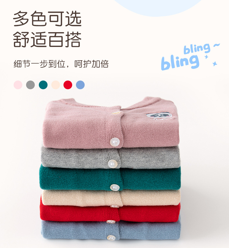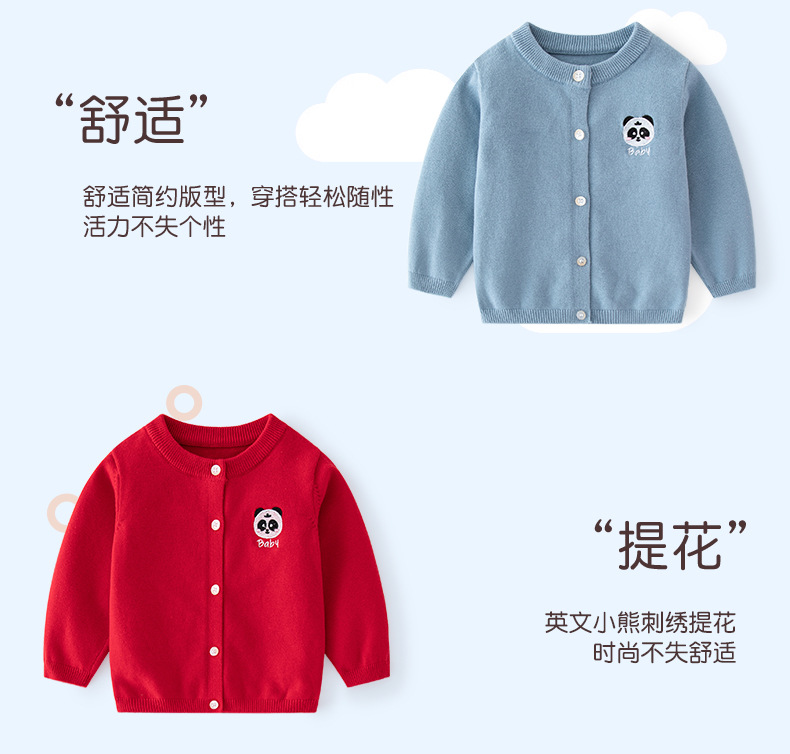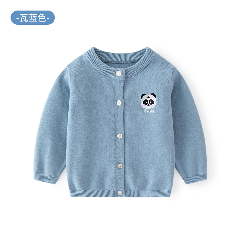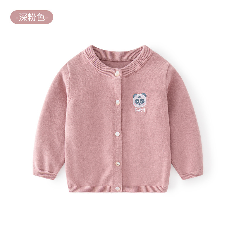 새로운 A급 자수 심플 아동용 스웨터 가디건 봄 가을 아동용 니트 가디건 라운드넥 베이비 니트 스웨터