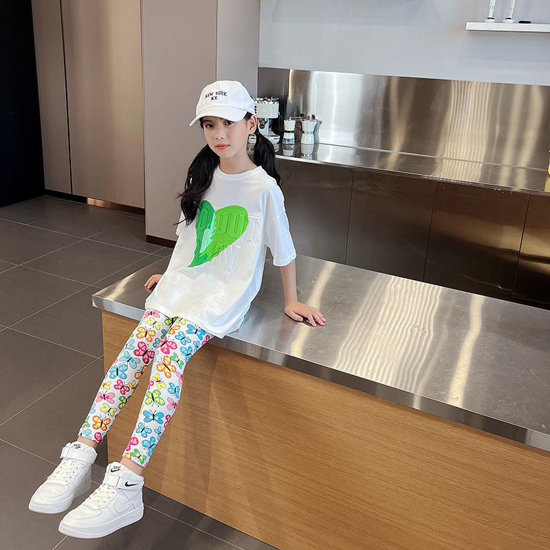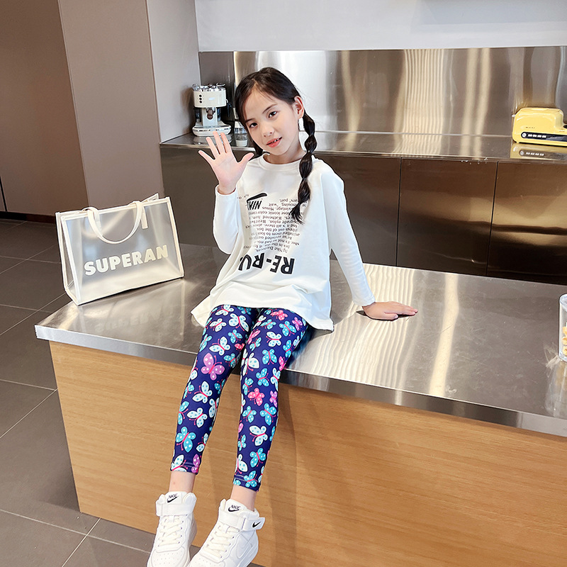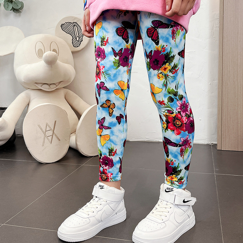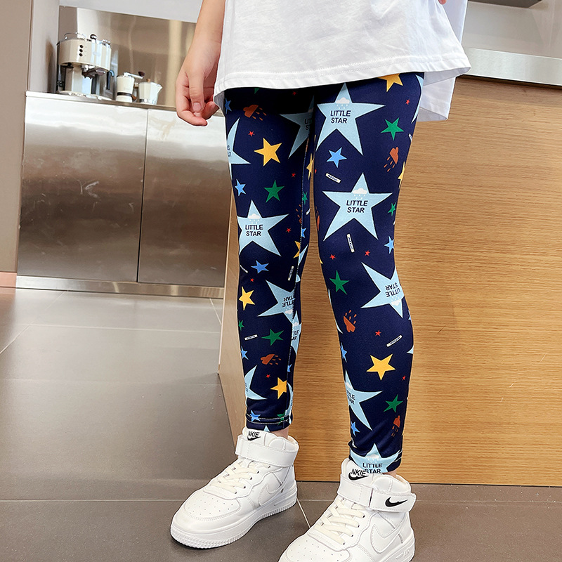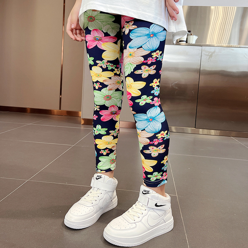 여름 새로운 한국식 발목 길이 바지 어린이 3-11 세 인쇄 컬러 여아 레깅스 얇은 겉옷 크로스 보더스토어 가기
