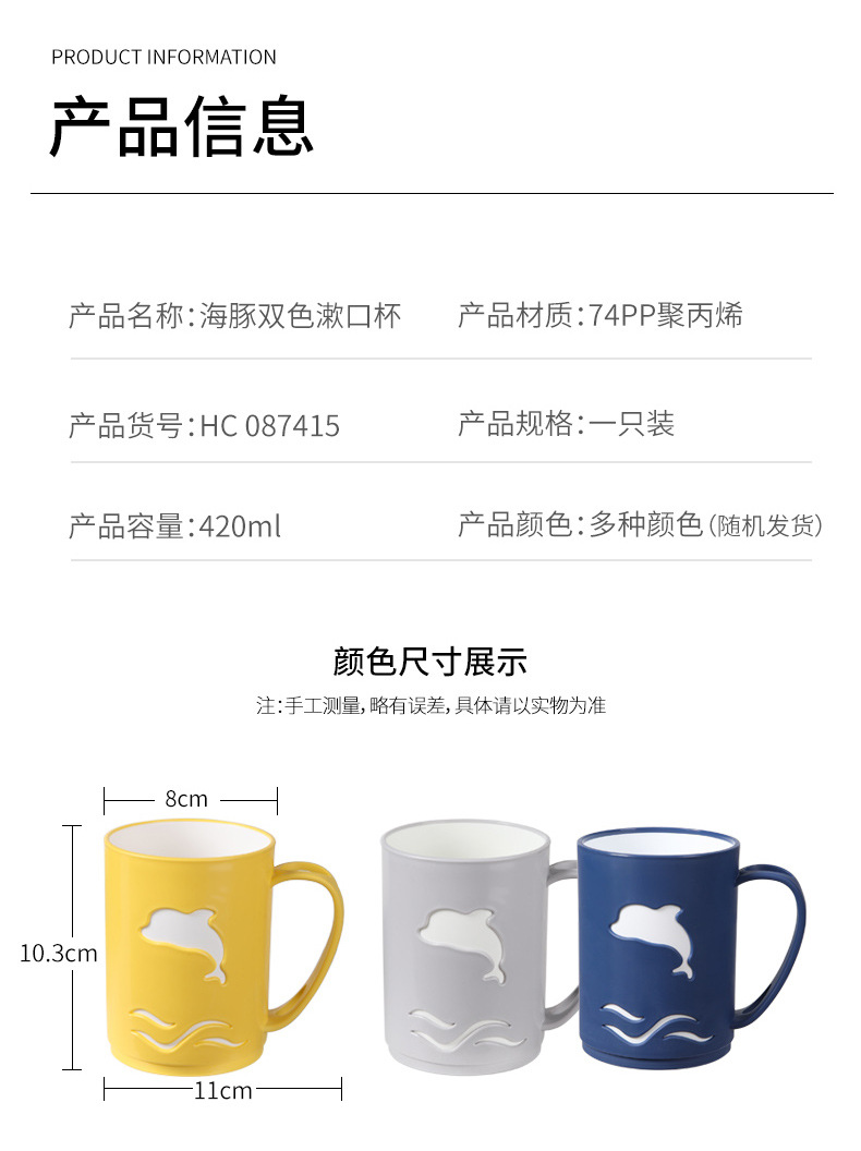 Meiliya 돌고래 더블 컬러 컵 브러시 컵 손잡이 성인 간단한 칫솔 컵 구멍 세트 백화점 도매