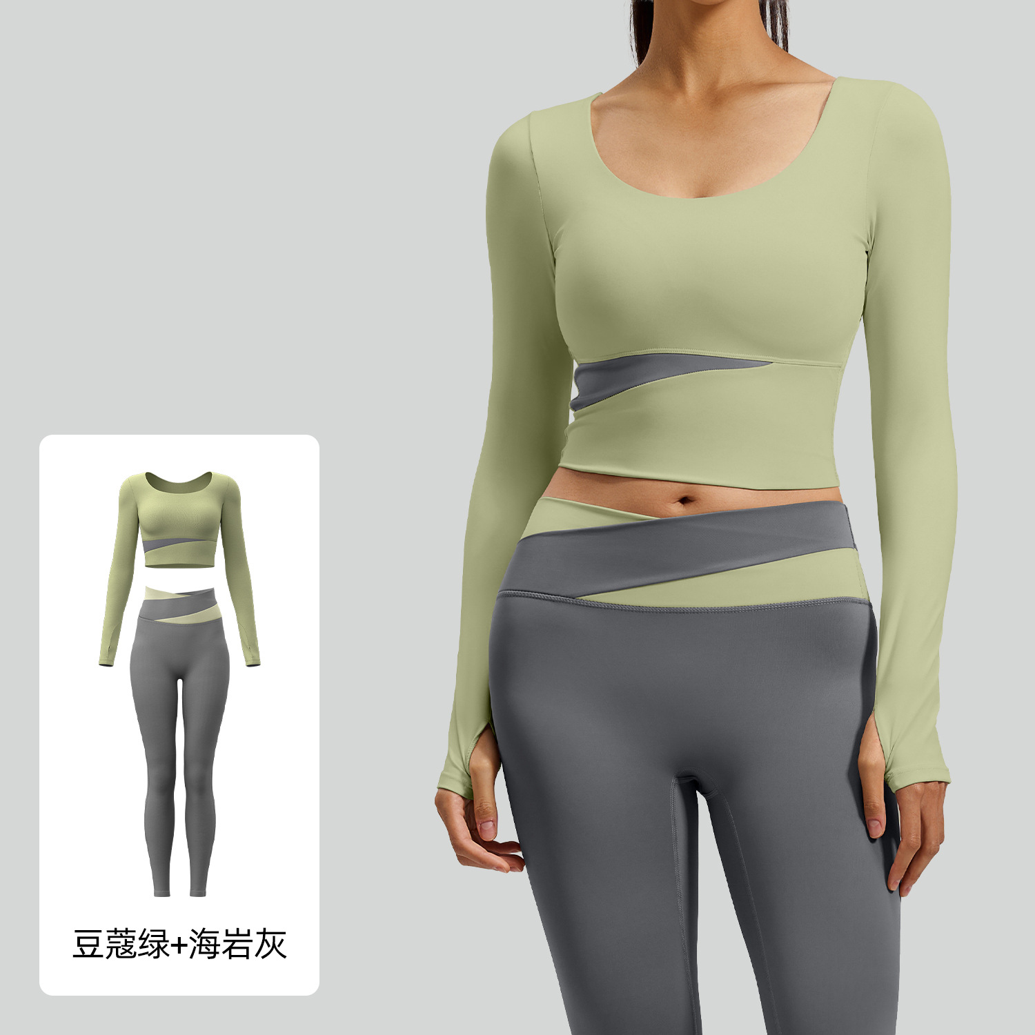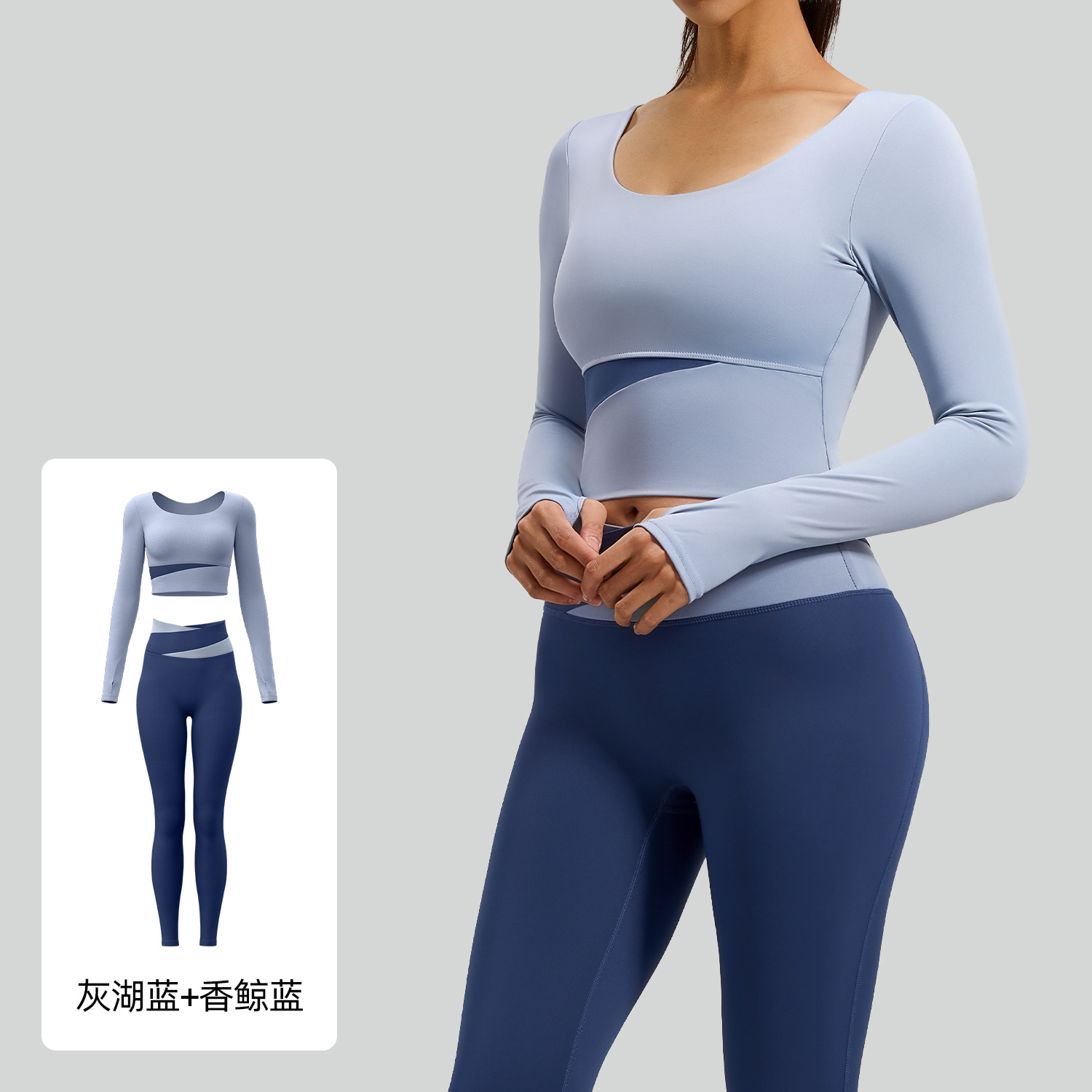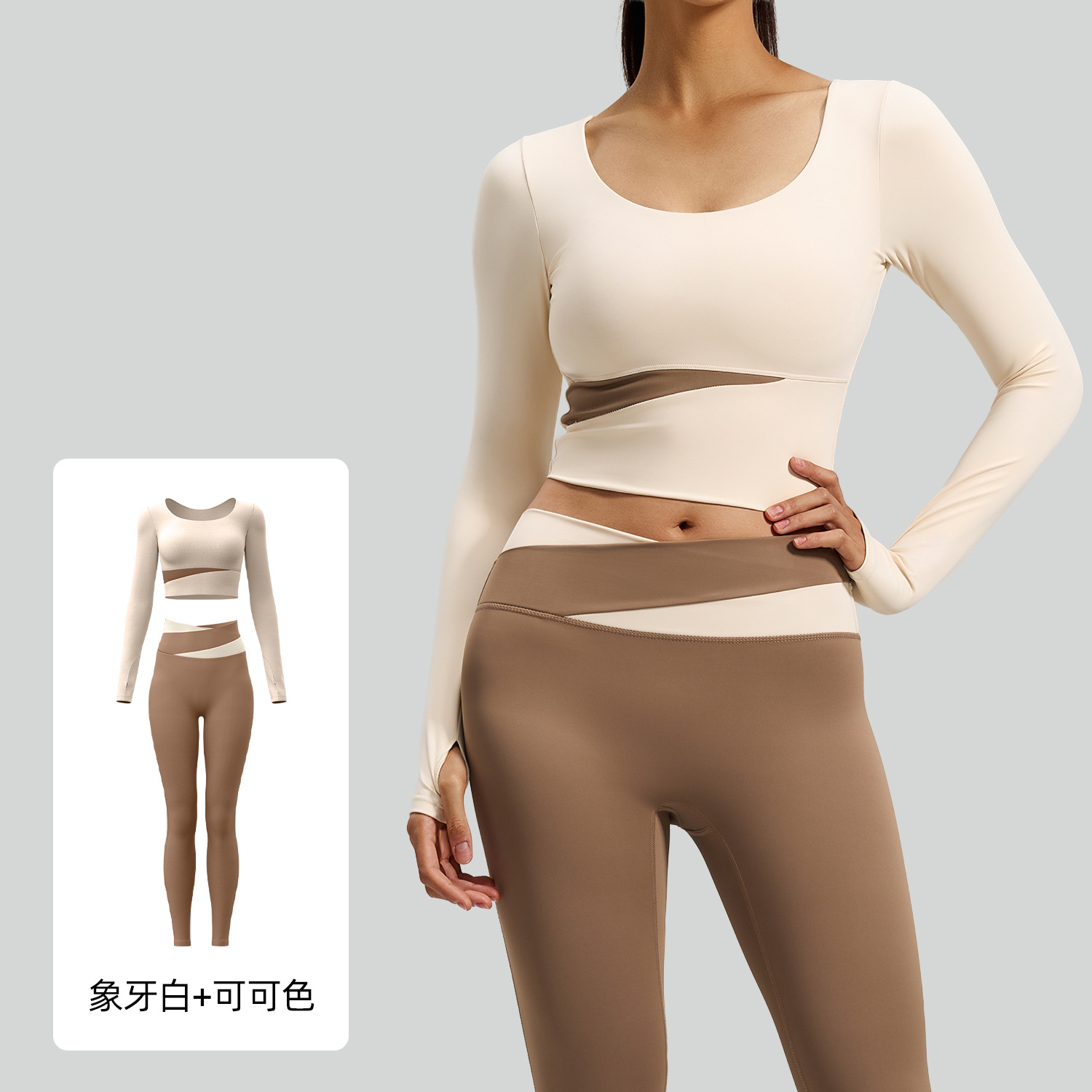 주이탕 컬러블록 요가복 누드톤 타이트핏 슬리밍 필라테스 트레이닝 스포츠 러닝 피트니스 배색 세트 여성용