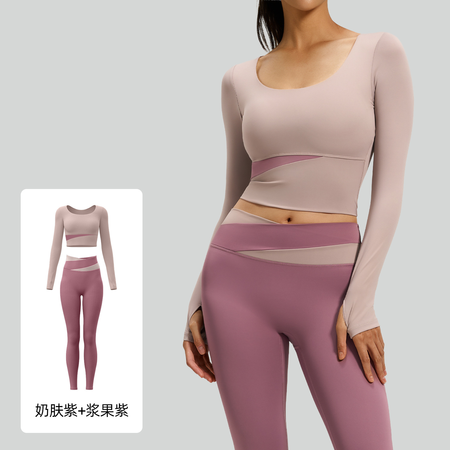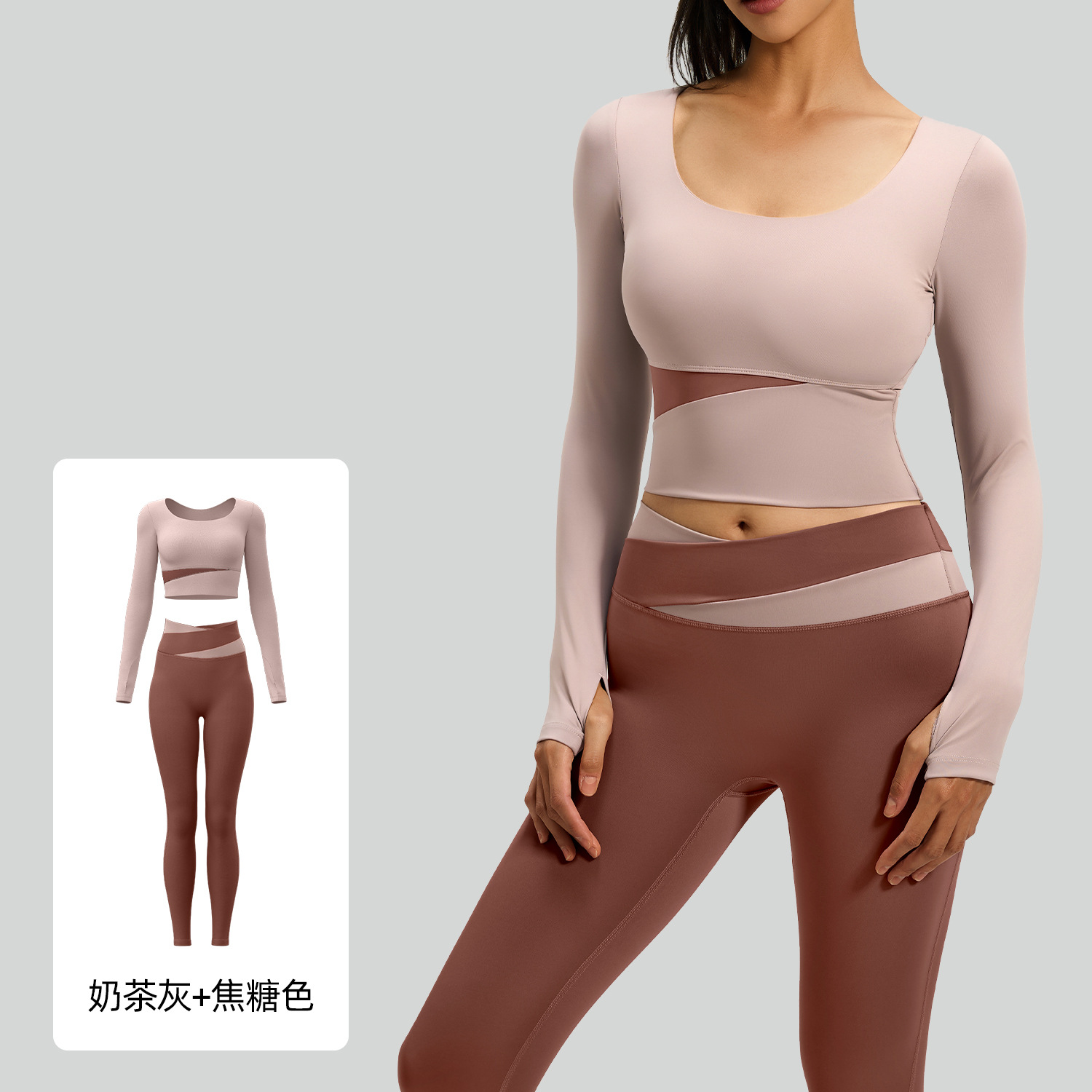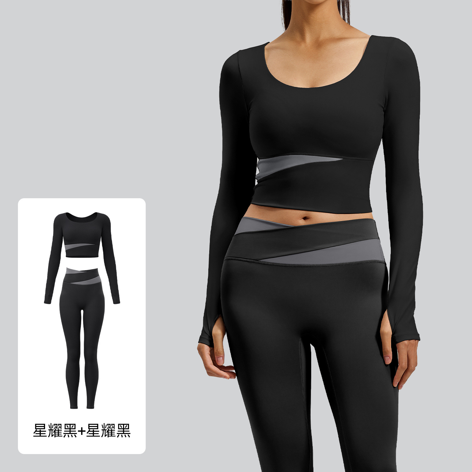 주이탕 컬러블록 요가복 누드톤 타이트핏 슬리밍 필라테스 트레이닝 스포츠 러닝 피트니스 배색 세트 여성용