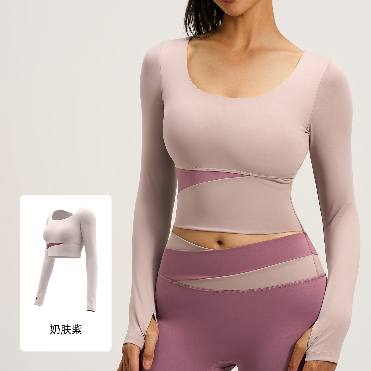 주이탕 컬러블록 요가복 누드톤 타이트핏 슬리밍 필라테스 트레이닝 스포츠 러닝 피트니스 배색 세트 여성용스토어 가기