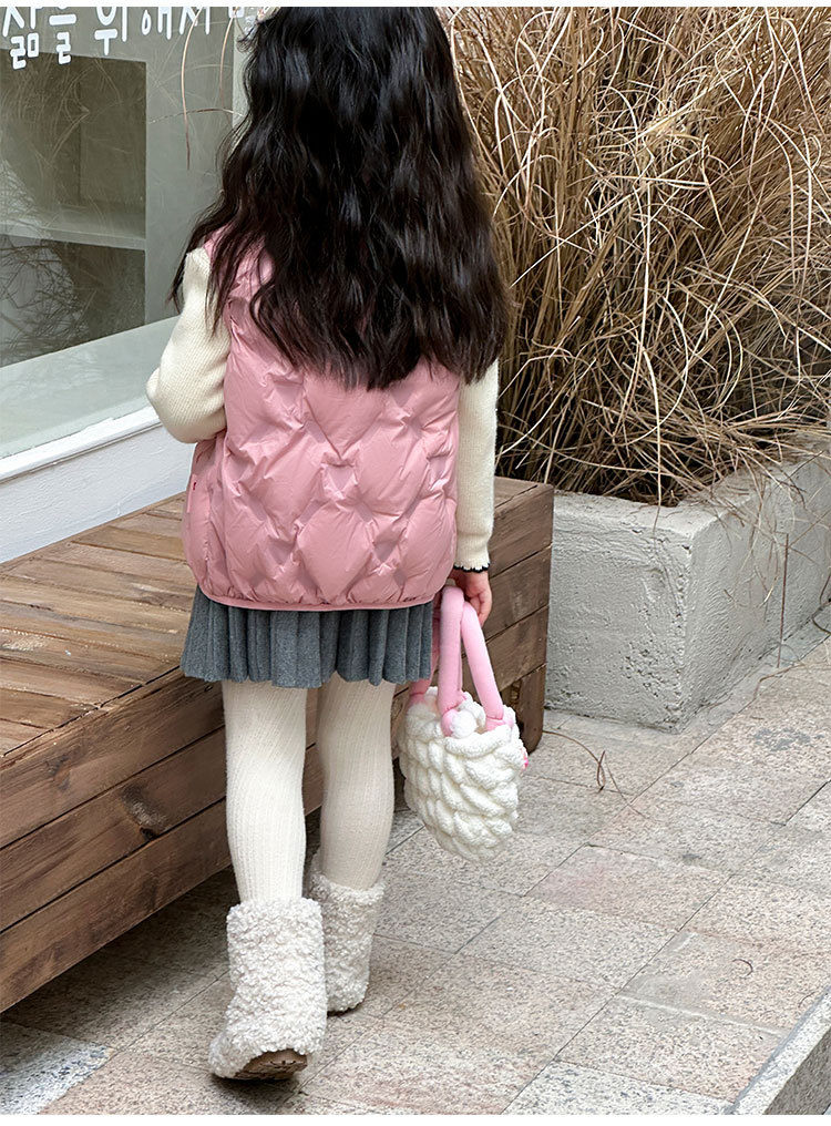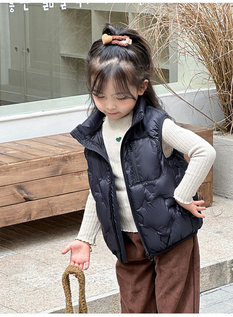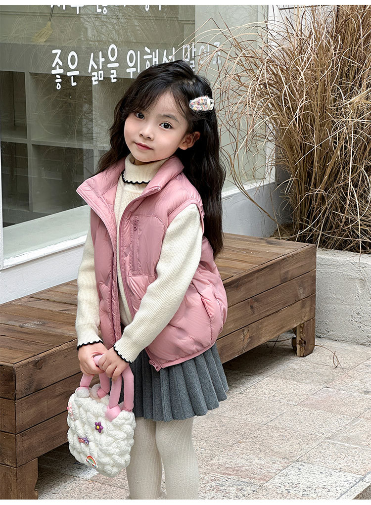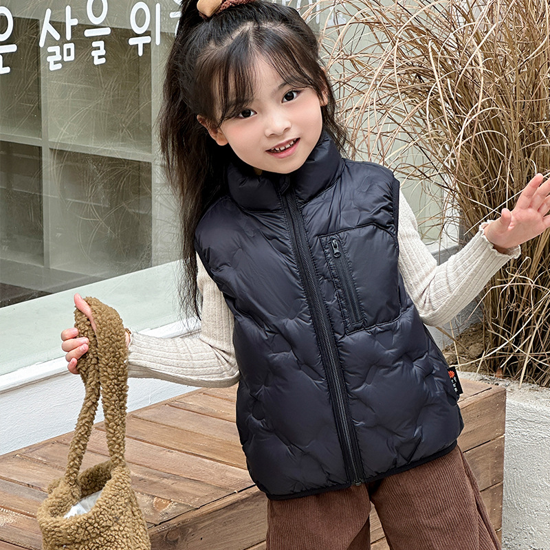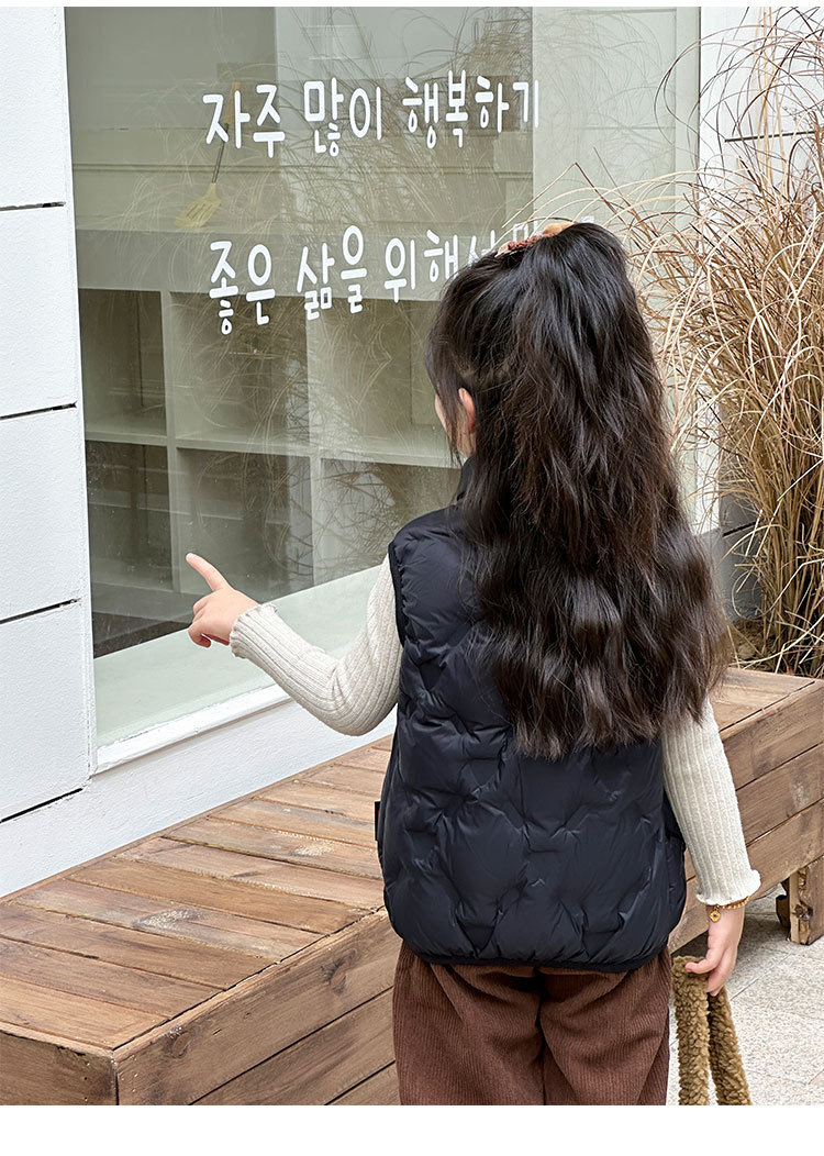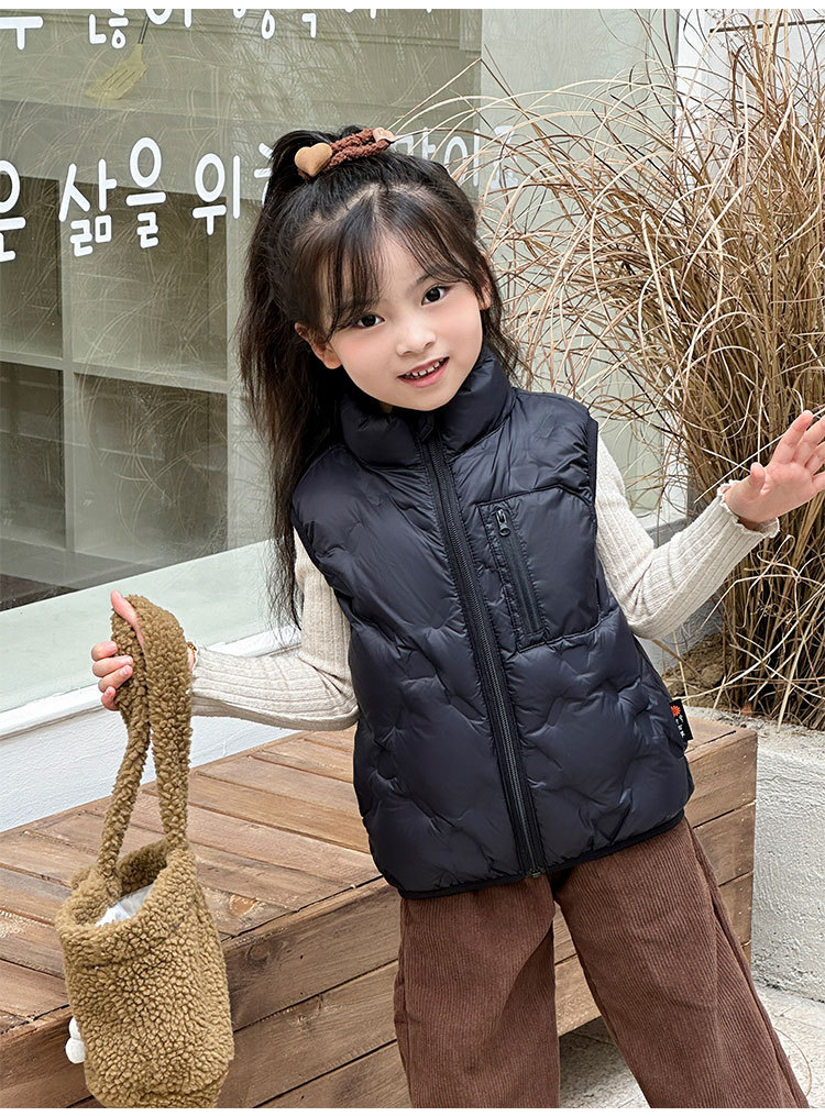 아동 다운 조끼 겨울 새로운 스타일 2025 소년과 소녀를 위한 한국 스타일의 느슨한 흰색 오리 다운 조끼 재킷스토어 가기