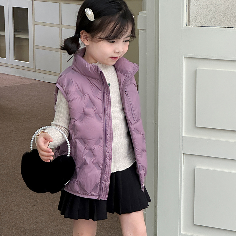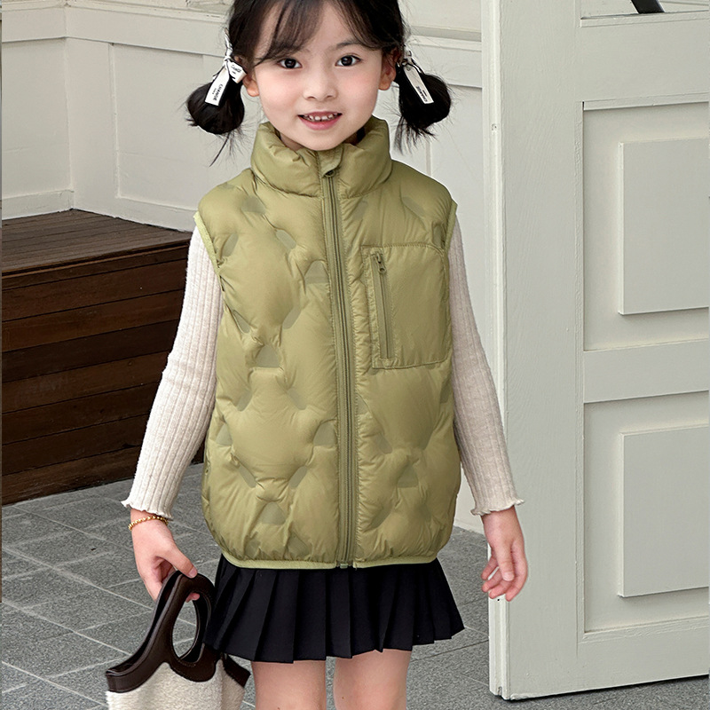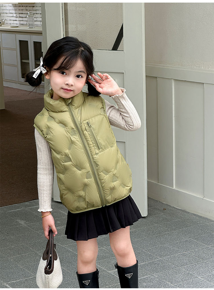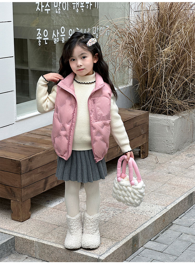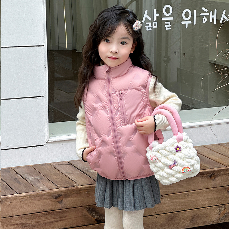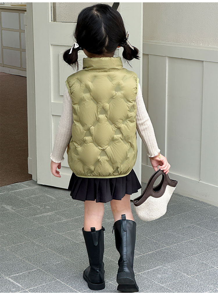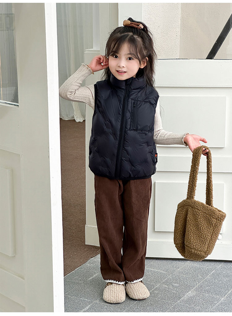 아동 다운 조끼 겨울 새로운 스타일 2025 소년과 소녀를 위한 한국 스타일의 느슨한 흰색 오리 다운 조끼 재킷스토어 가기