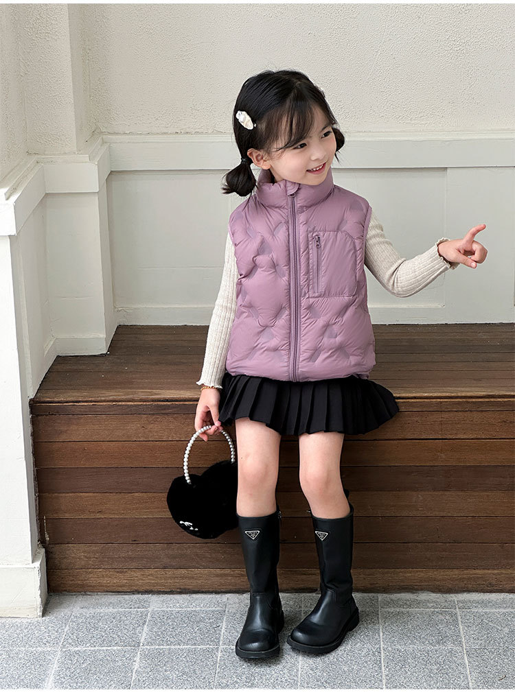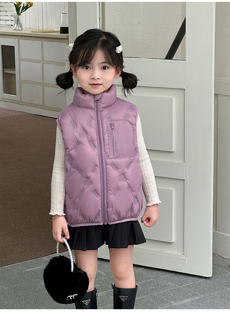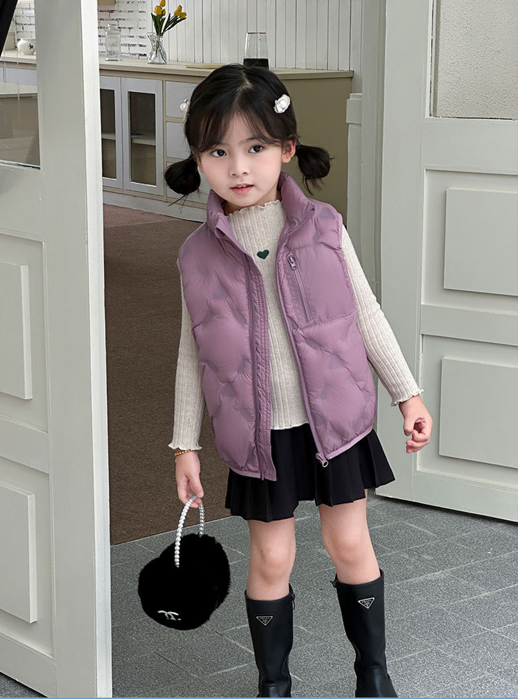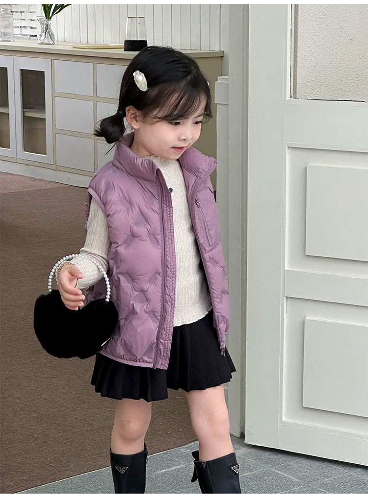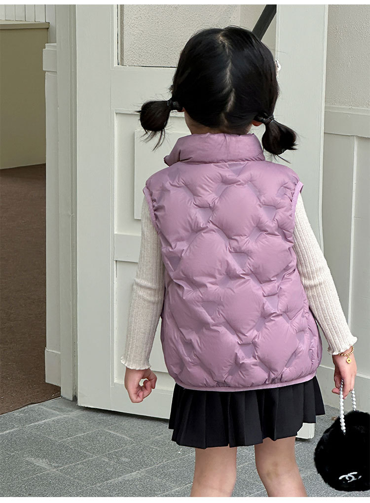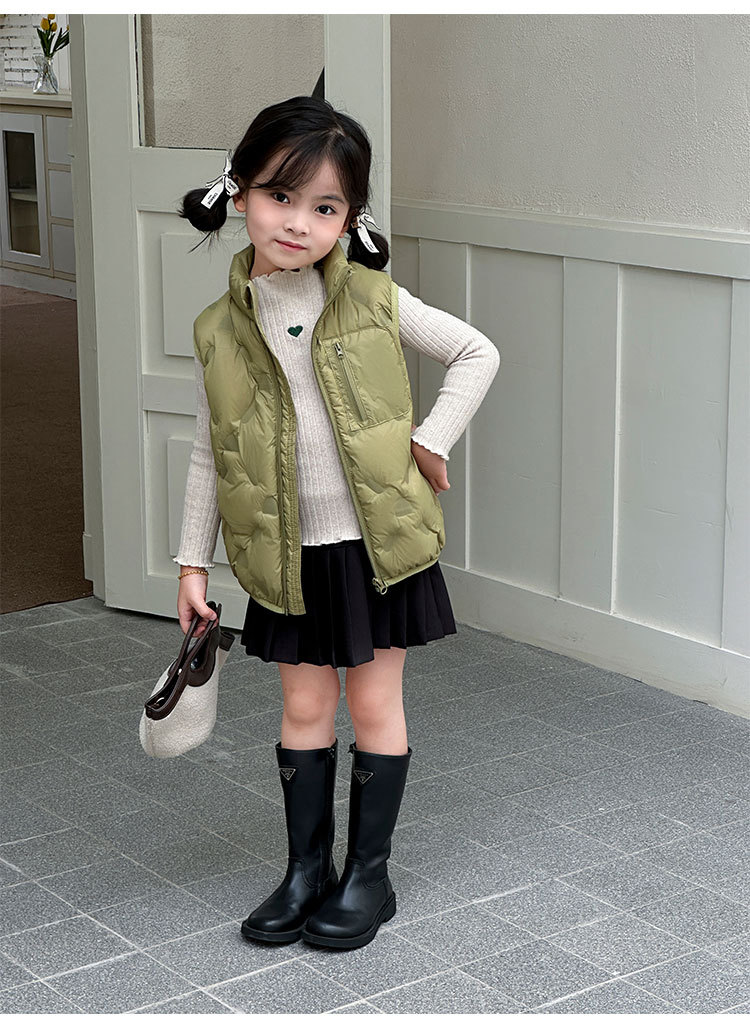 아동 다운 조끼 겨울 새로운 스타일 2025 소년과 소녀를 위한 한국 스타일의 느슨한 흰색 오리 다운 조끼 재킷스토어 가기