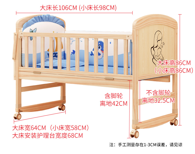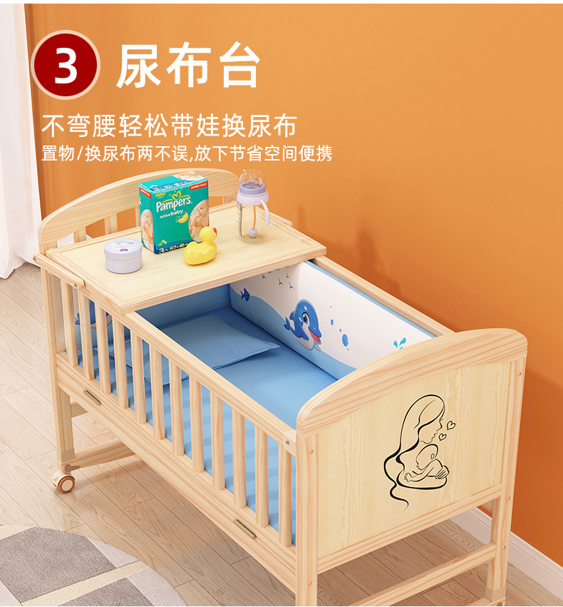 유아용 침대, 아기 침대, BB 침대, 아기 침대, 이동식 신생아 침대, 다기능 원목 요람 침대, 접합형 대형 침대