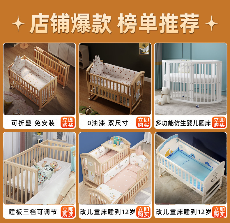 유아용 침대, 아기 침대, BB 침대, 아기 침대, 이동식 신생아 침대, 다기능 원목 요람 침대, 접합형 대형 침대스토어 가기