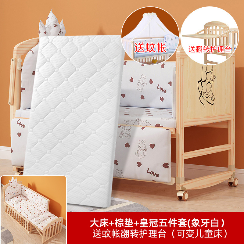 • 대형 침대 + 브라운 매트 + 크라운 두꺼워진 5종 세트(아이보리 화이트, 모기장 수유 테이블 포함)
