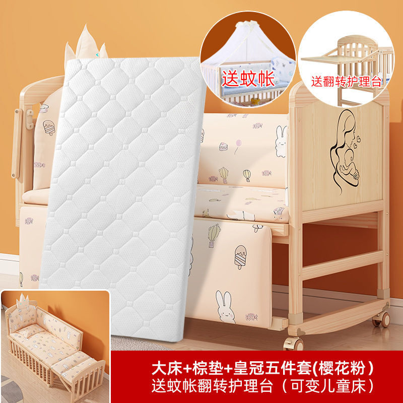• 대형 침대 + 브라운 매트 + 크라운 두꺼워진 5종 세트(사쿠라 핑크, 모기장 수유 테이블 포함)