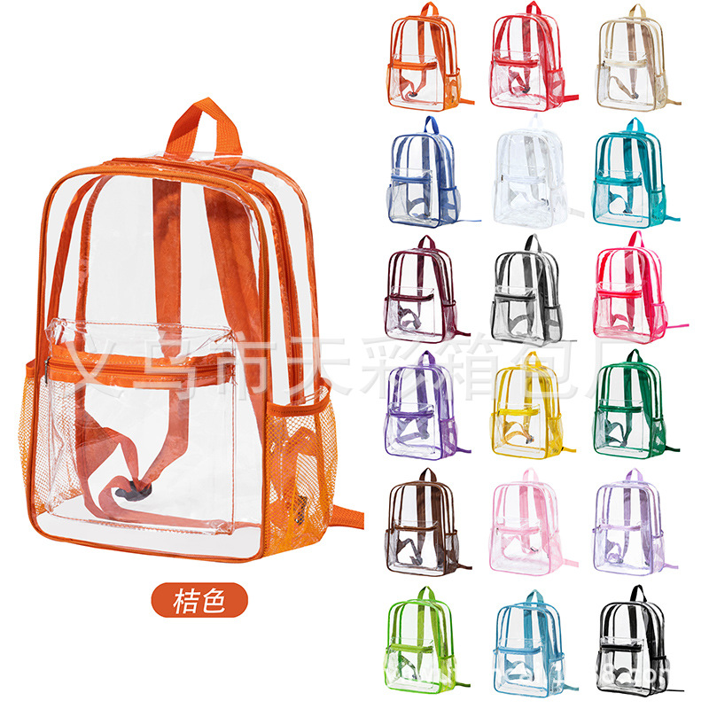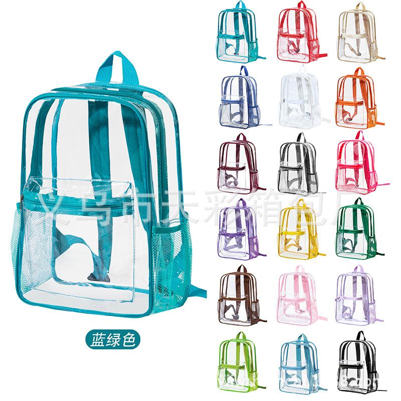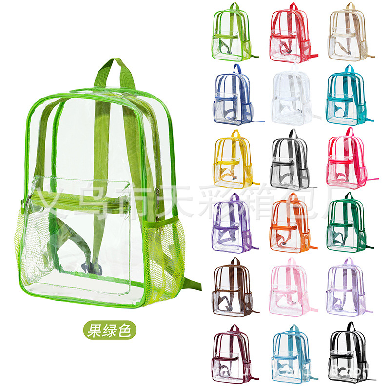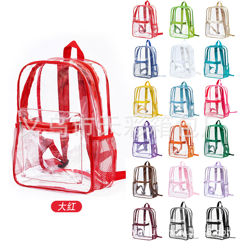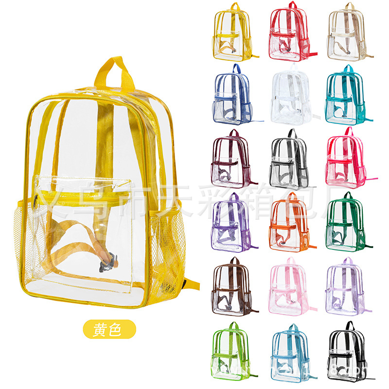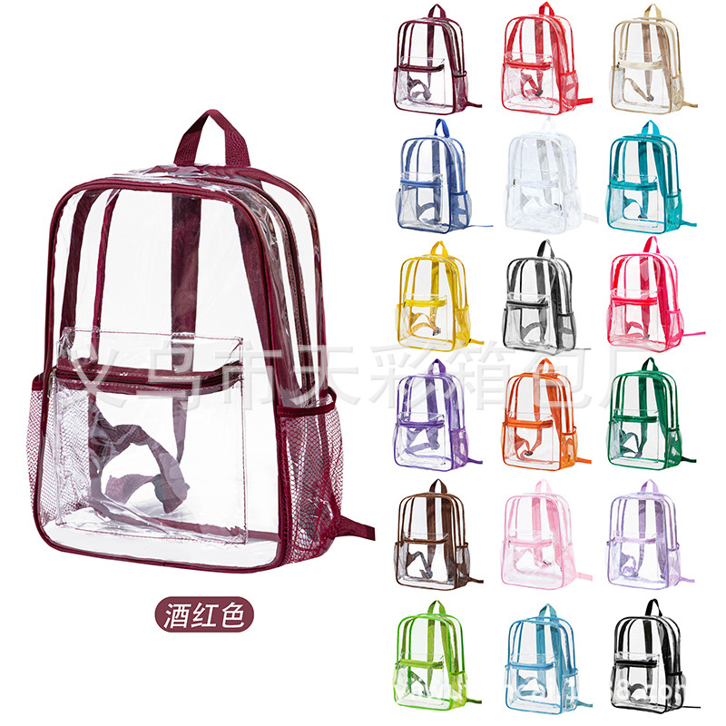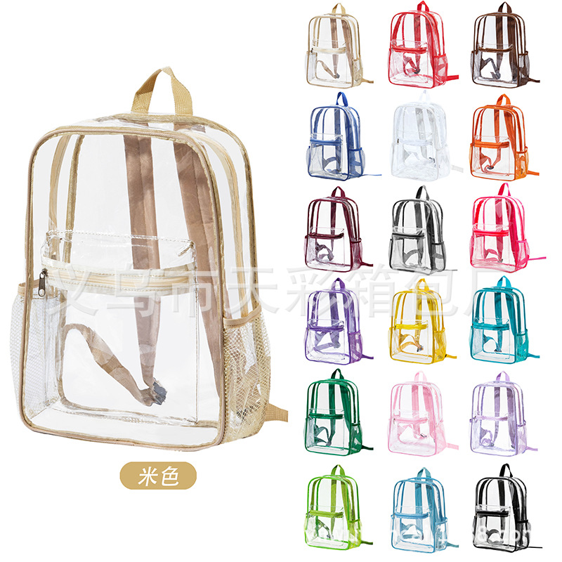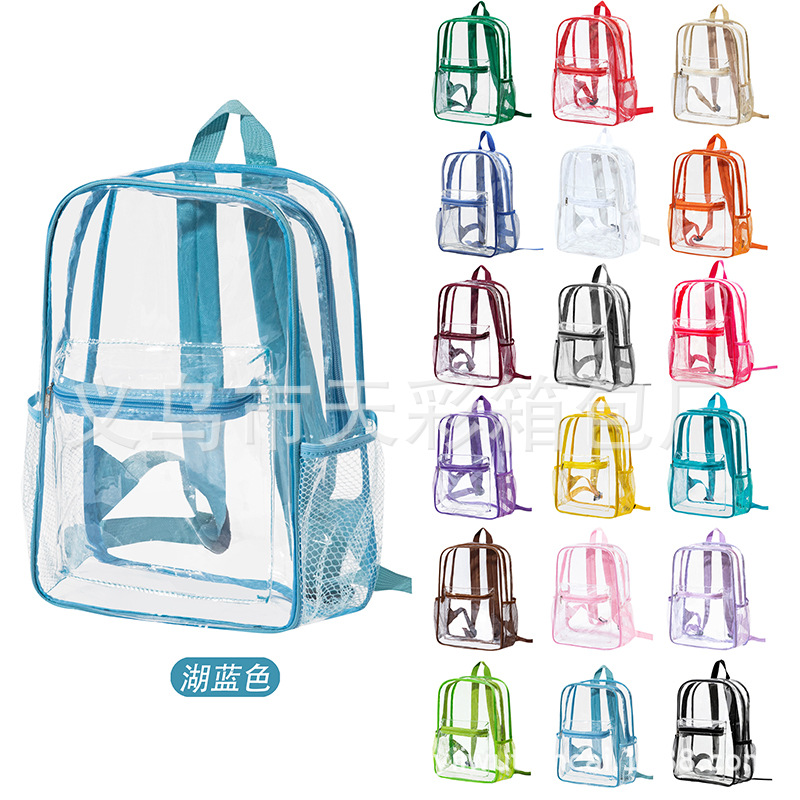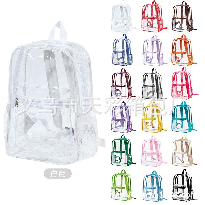 크로스보더 아마존 투명 백팩 방수 PVC 수납 대용량 학생 가방 남녀 공용 백팩 젤리백