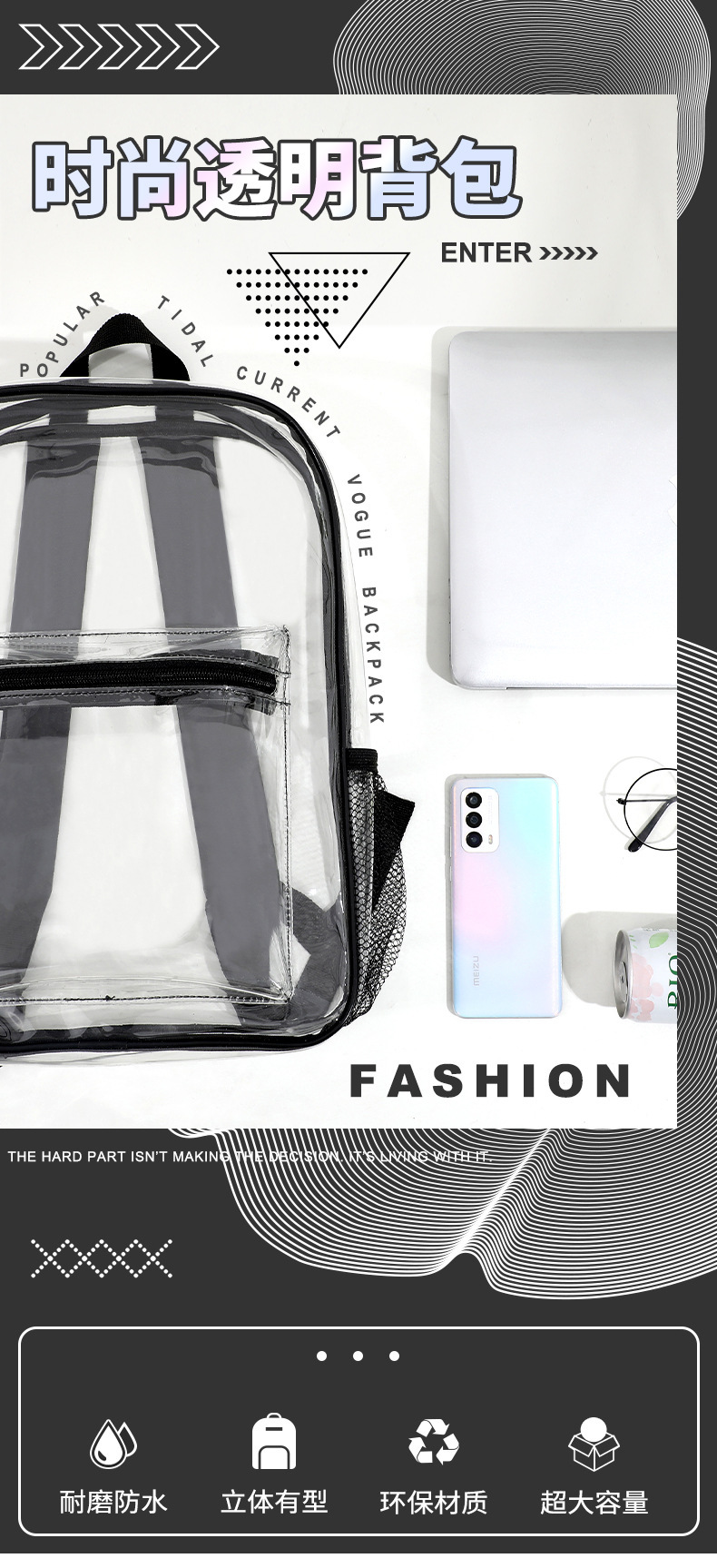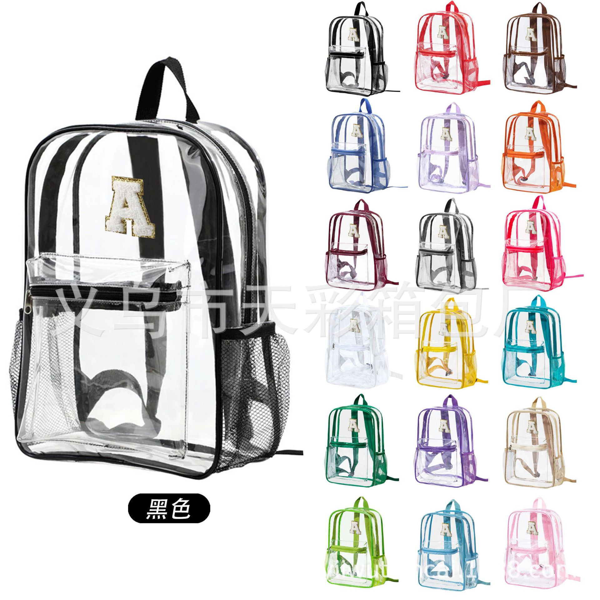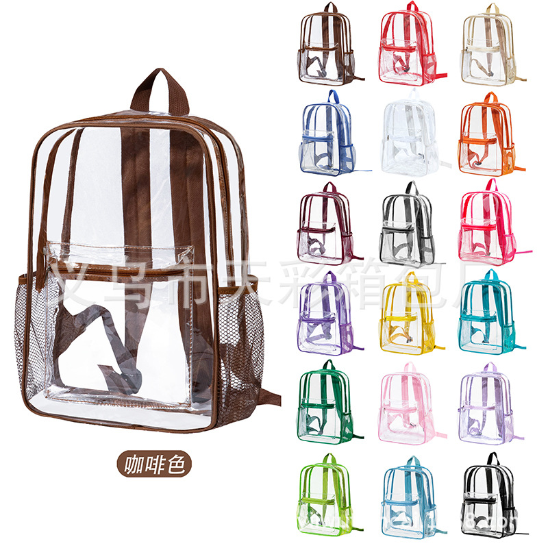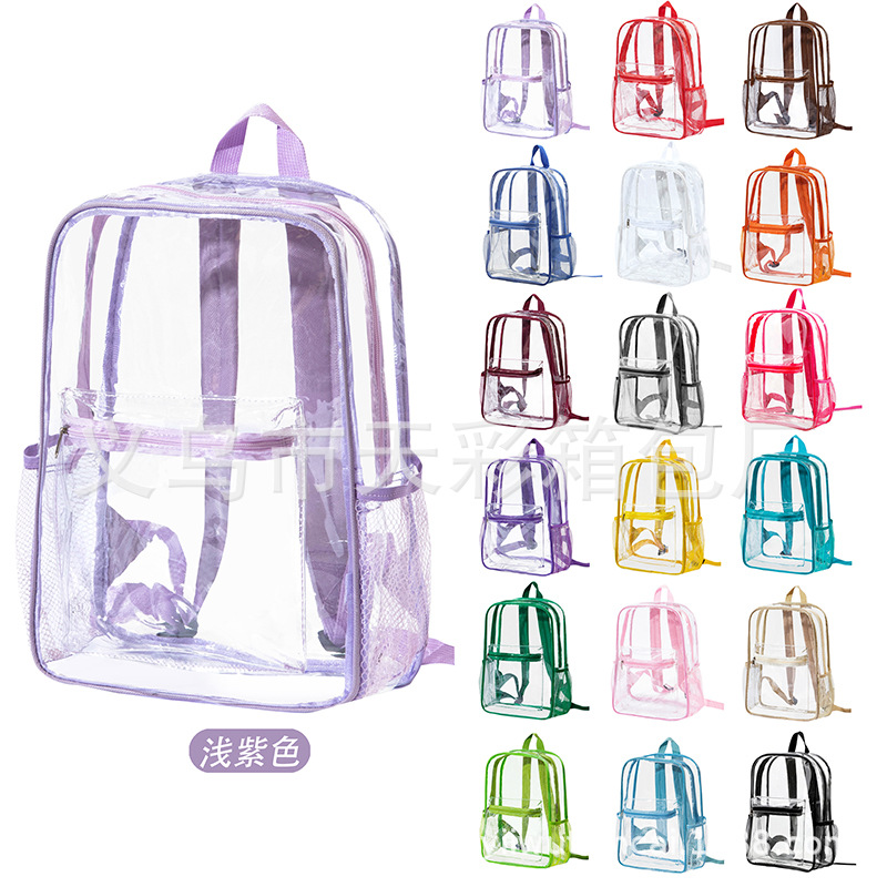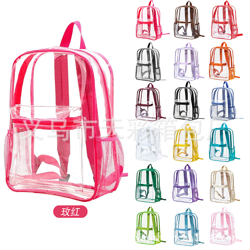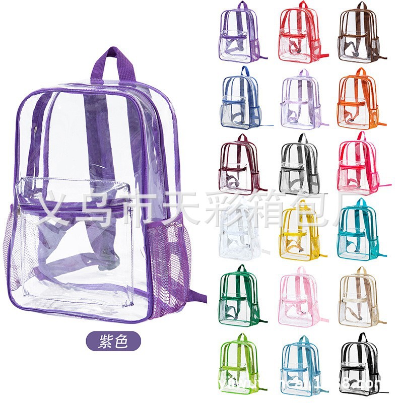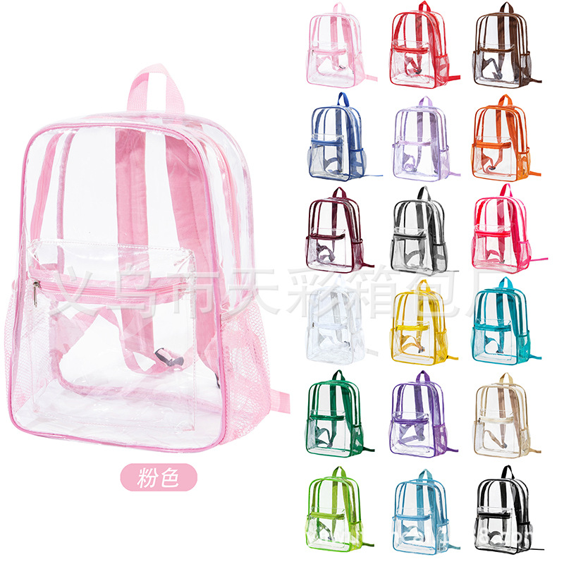 크로스보더 아마존 투명 백팩 방수 PVC 수납 대용량 학생 가방 남녀 공용 백팩 젤리백