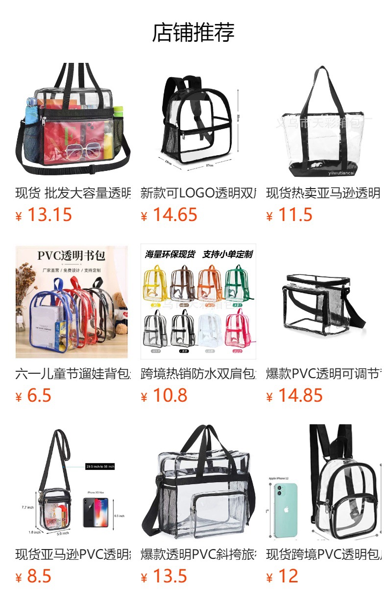 크로스보더 아마존 투명 백팩 방수 PVC 수납 대용량 학생 가방 남녀 공용 백팩 젤리백스토어 가기