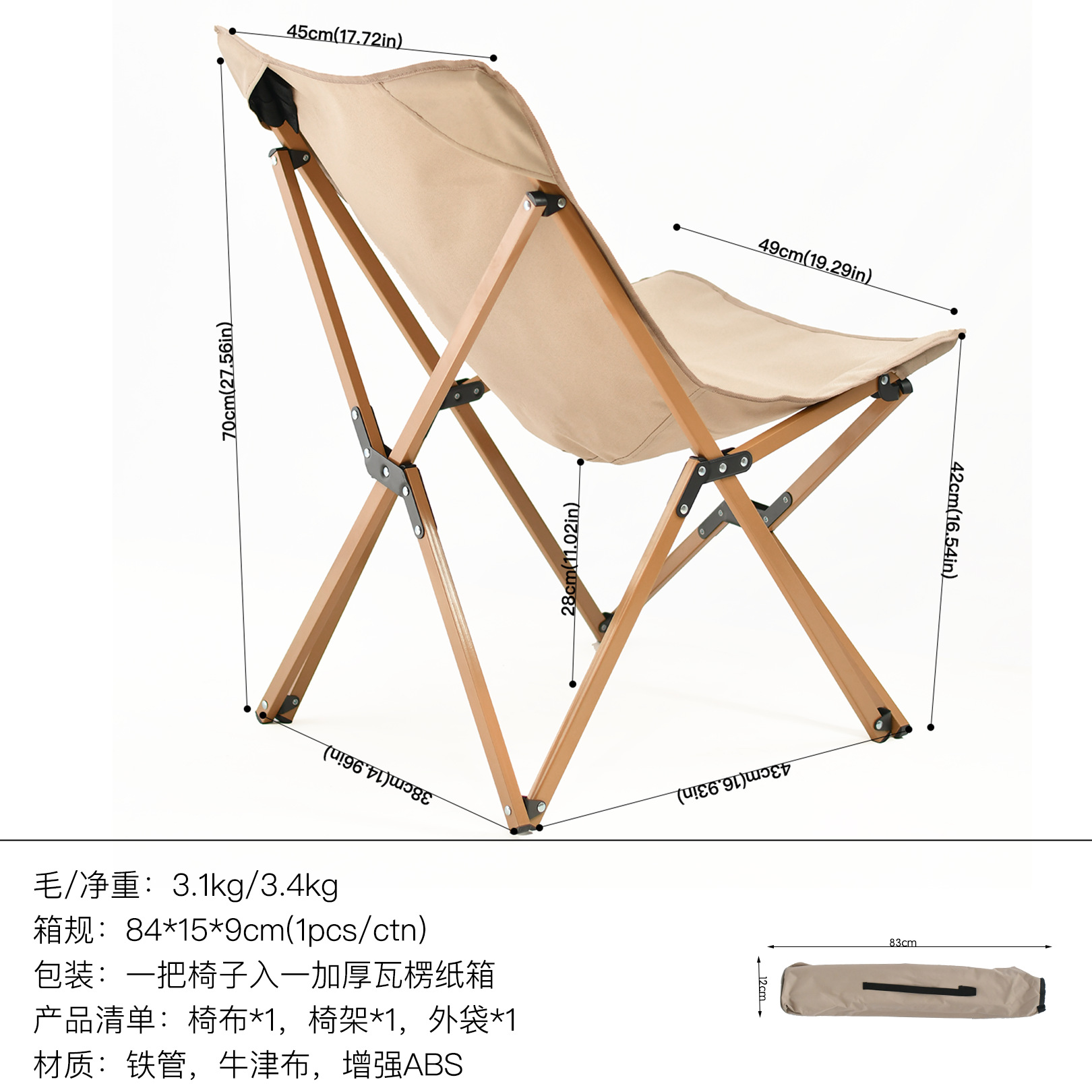 접이식 테이블 알루미늄 합금 야외용 강철 파이프 공간 절약형 접이식 의자 버터플라이 체어 접이식 캠핑 의자