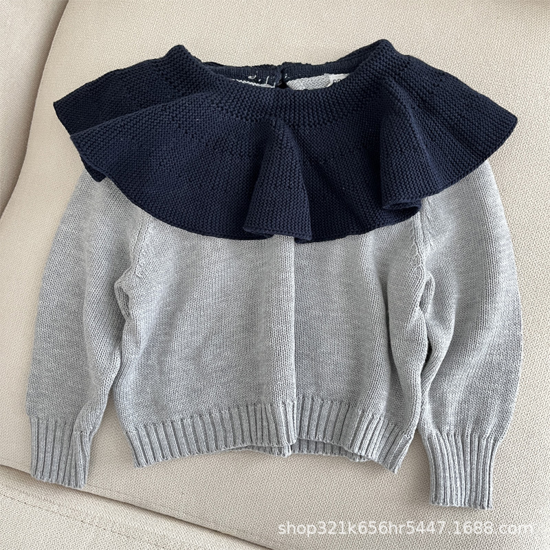 가을과 겨울 새로운 소녀 세트 순면 토끼 꼬리 반바지 빵 바지 주름 옷깃 스웨터 세련된스토어 가기