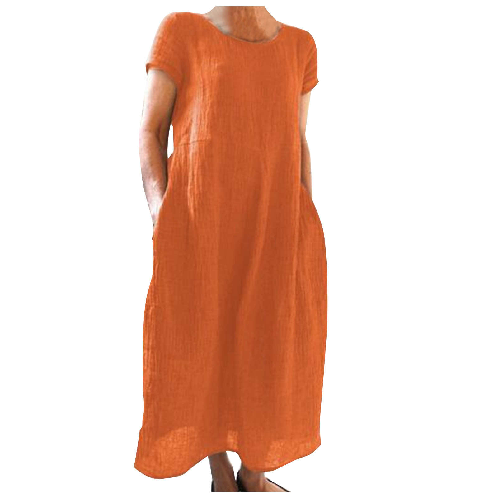국경 간 Amazon AliExpress 유럽과 미국의 단색 복고풍 루즈 코튼 및 린넨 드레스 현장 공장 직접 판매스토어 가기