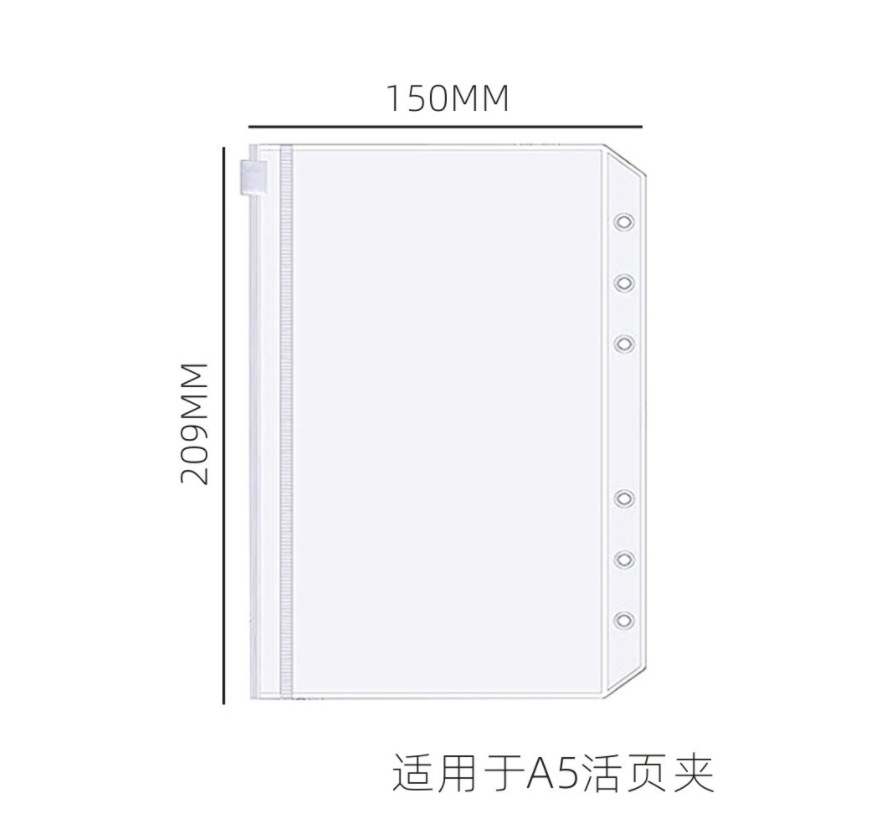 크로스 보더 6 홀 루스 리프 노트 PVC 지퍼 가방 지폐 가방 A5A6 핸드 북 보관 가방 15 팩 20 팩스토어 가기