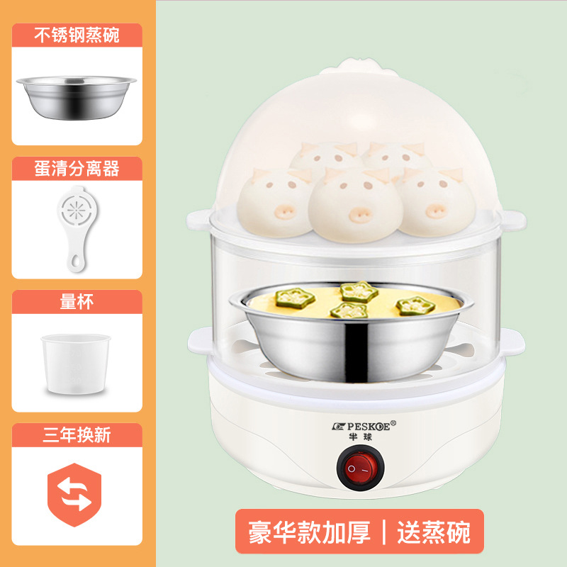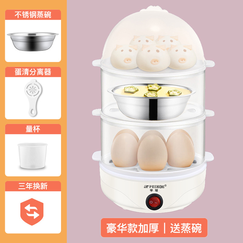 备注:以上蒸全熟鸡蛋是在25℃,额定7个鸡蛋情况下测量的数据。如鸡蛋数量少于7个,或者鸡蛋刚从冰箱取出,要适当增加水量,不然会出现蒸煮的鸡蛋偏生现象。