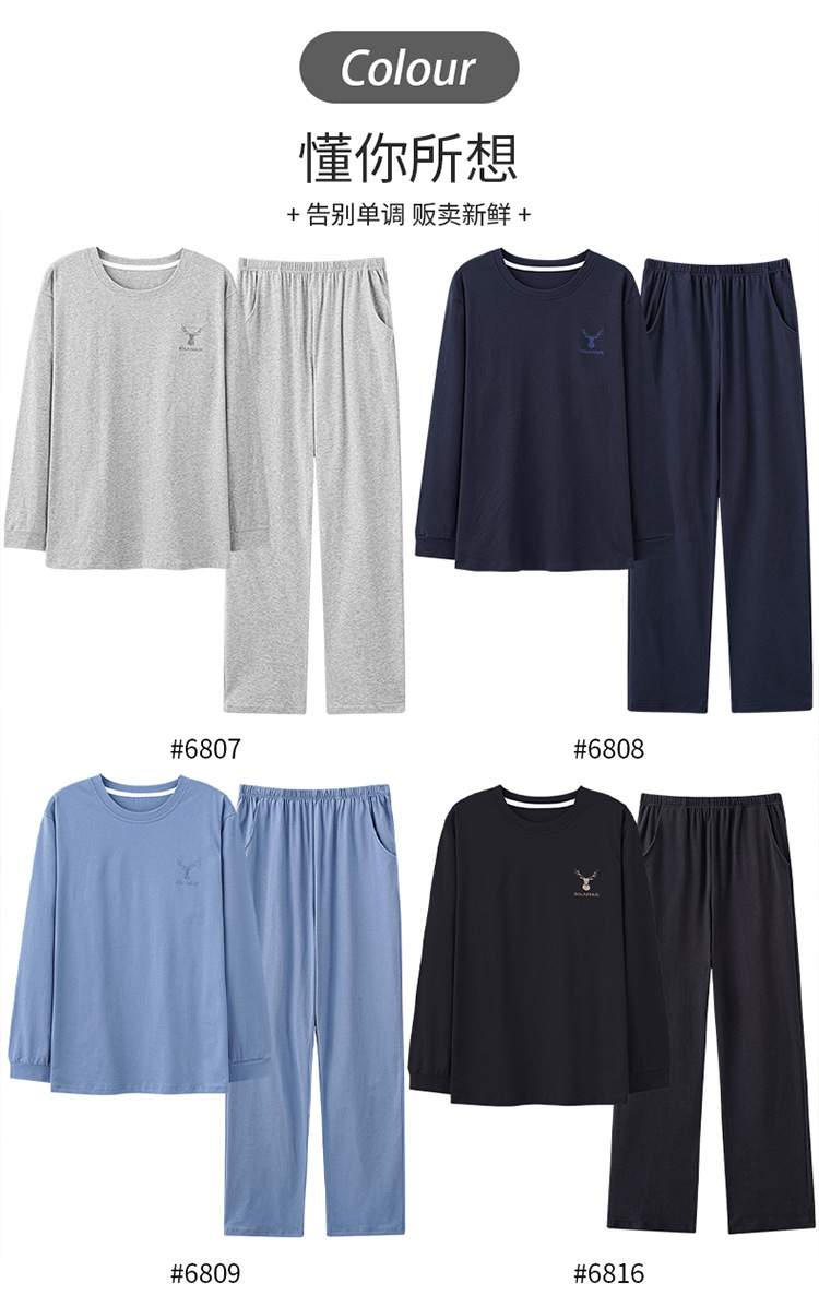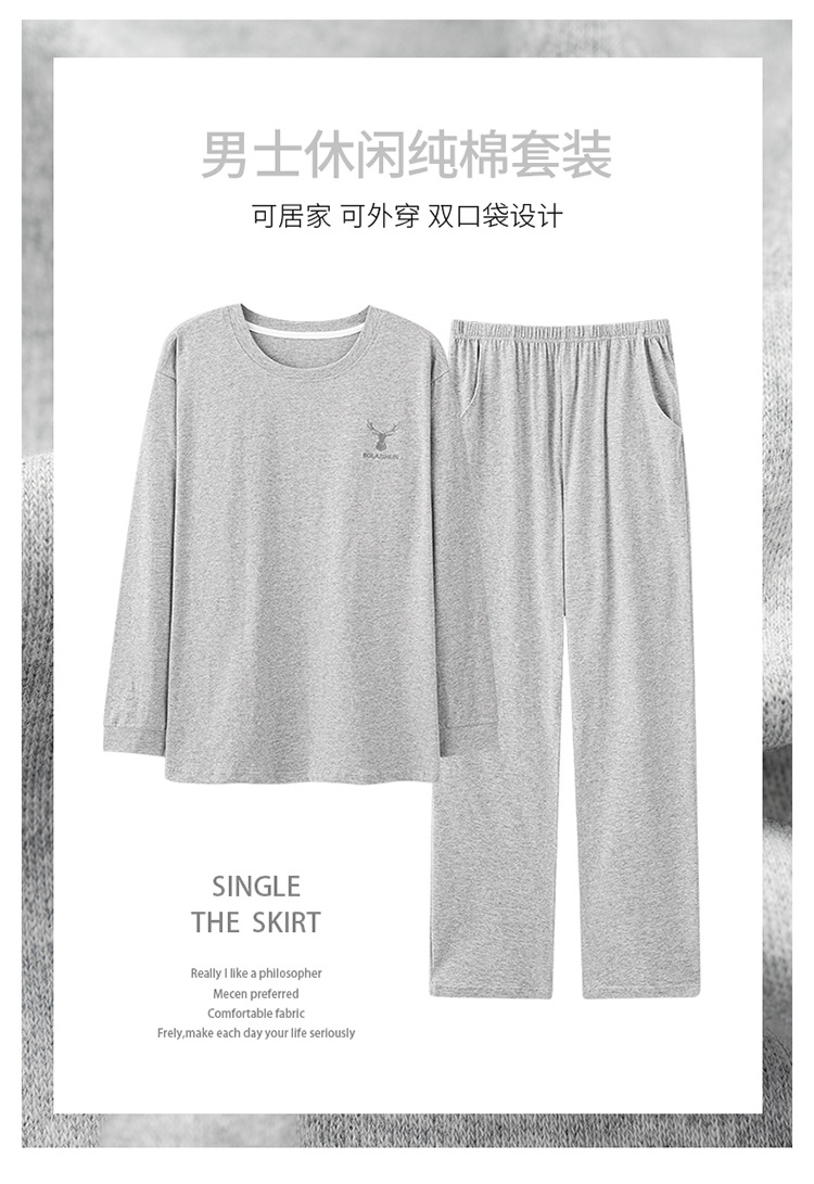 남자 잠옷 봄과 가을 긴팔 간단한 체크 무늬 바지 일본 청소년 플러스 사이즈 단색 겉옷 홈웨어 세트스토어 가기