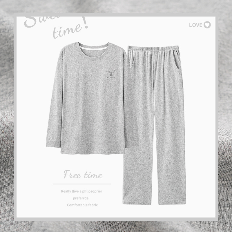 남자 잠옷 봄과 가을 긴팔 간단한 체크 무늬 바지 일본 청소년 플러스 사이즈 단색 겉옷 홈웨어 세트