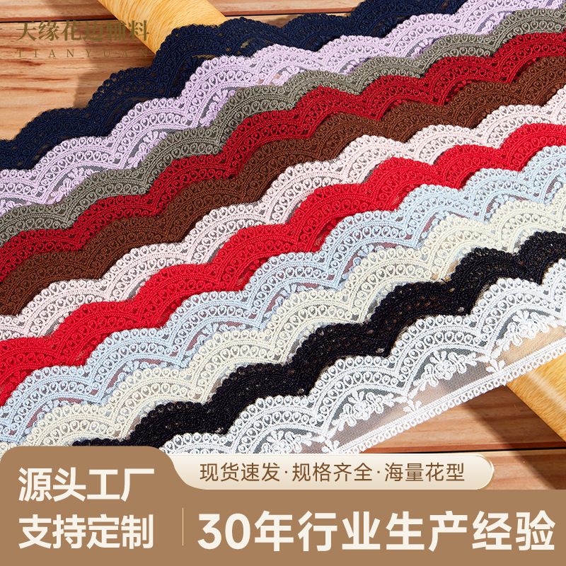 절묘한 살구색 물결 모양의 가장자리 너비 5.5cm 면실 메쉬 자수 결혼식 원피스 어린이 의류 액세서리 레이스스토어 가기