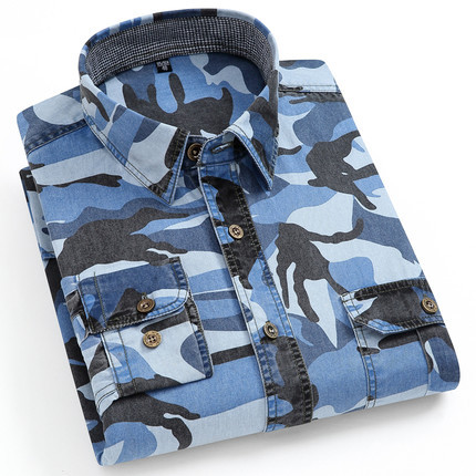 봄과 가을 면 위장 셔츠 긴 소매 남성 야외 캐주얼 인쇄 작업복 셔츠 재킷 남성 도매스토어 가기
