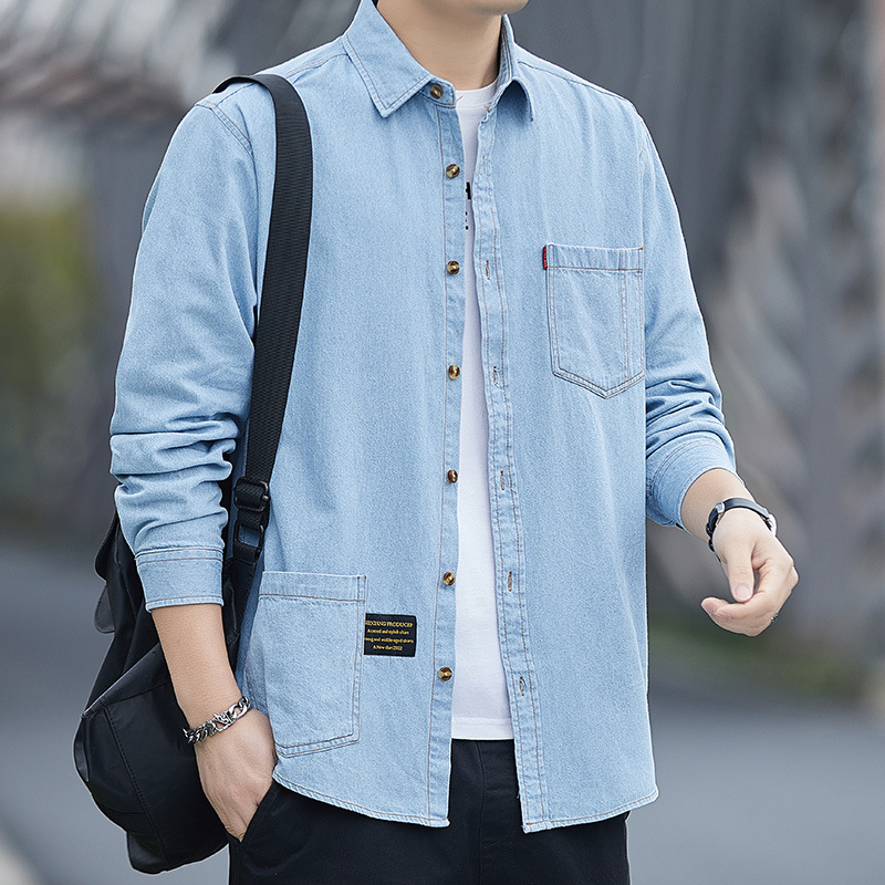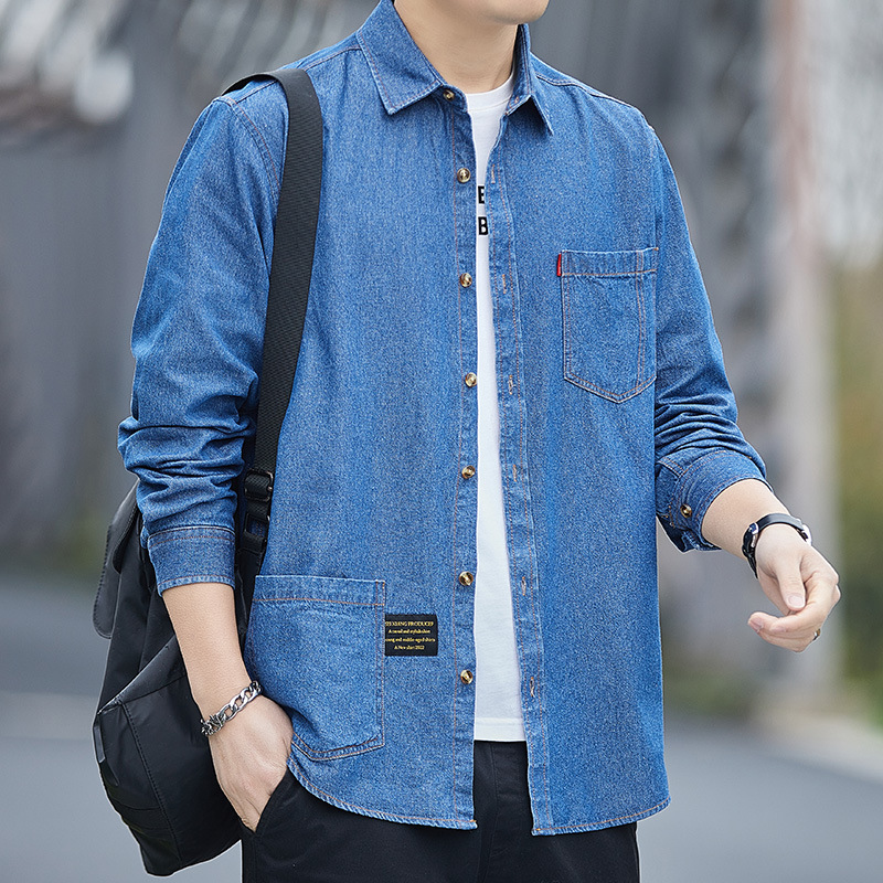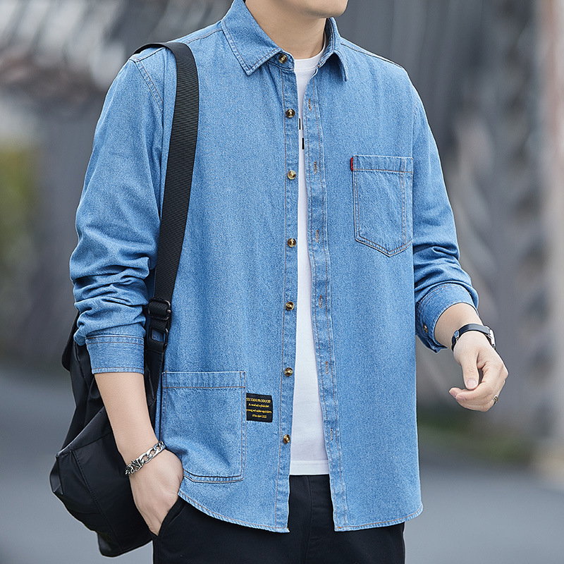 새로운 봄과 가을 면 데님 남자의 셔츠 긴 소매 캐주얼 재킷 씻어 느슨한 탑 남자의 도매스토어 가기