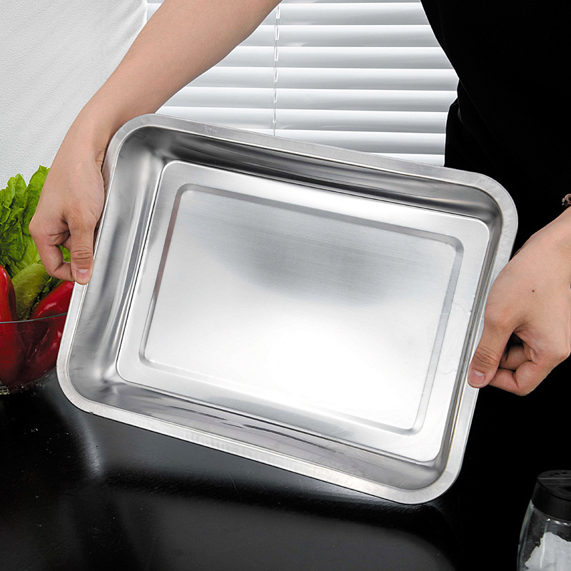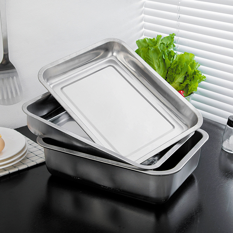 304 두껍고 깊은 스테인레스 스틸 사각 플레이트 직사각형 트레이 스테인레스 스틸 플레이트 바베큐 플레이트 디너 플레이트 7cm10cm스토어 가기