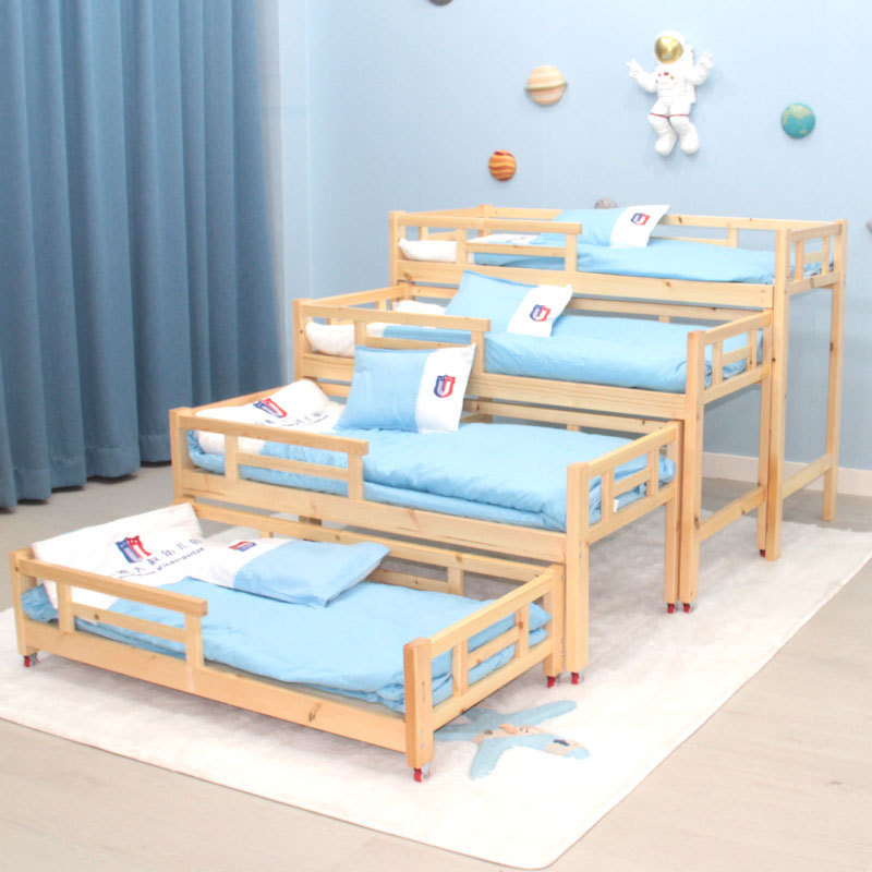 유치원 단단한 나무 낮잠 침대 상하 이층 침대 높고 낮은 이층 침대 조기 교육 양육권 수업 어린이 낮잠 침대 푸시 풀 스택 침대