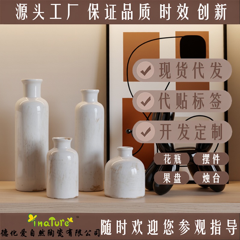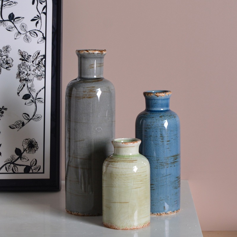 국경 간 대외 무역 핫 세일 특별 세라믹 세트 꽃병 얼음 균열 복고풍 목가적 꽃꽂이 파란색과 흰색 도자기