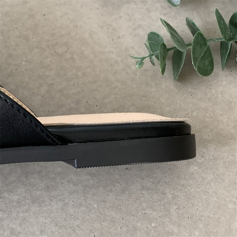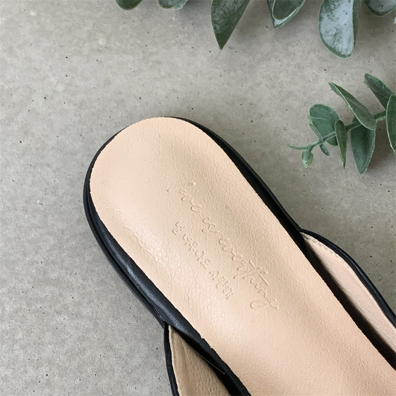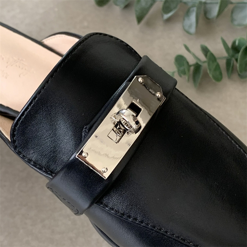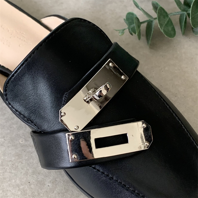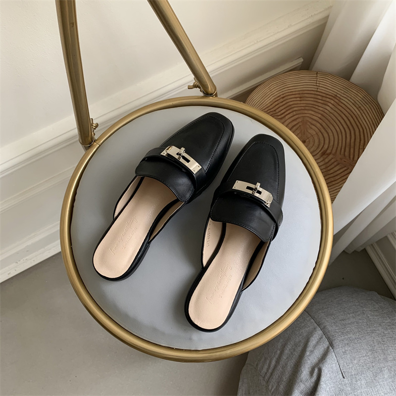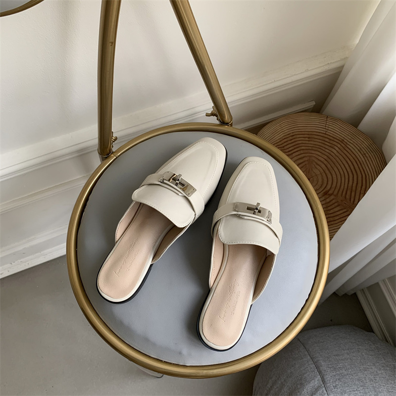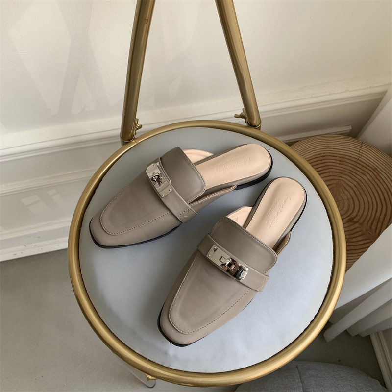 여성용 여름 슬리퍼 2025 새로운 복고풍 스퀘어 토 로우 힐 작은 가죽 신발 금속 버클 인터넷 연예인 Baotou Muller 반 슬리퍼스토어 가기