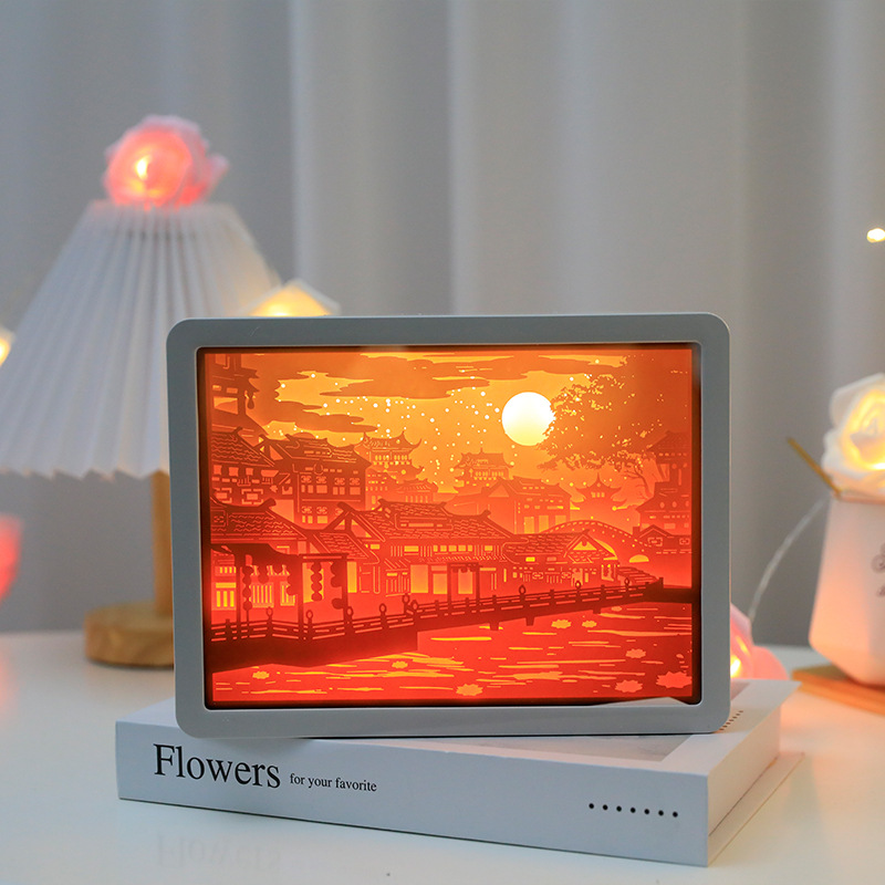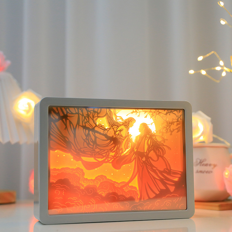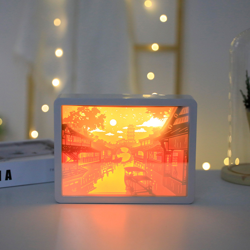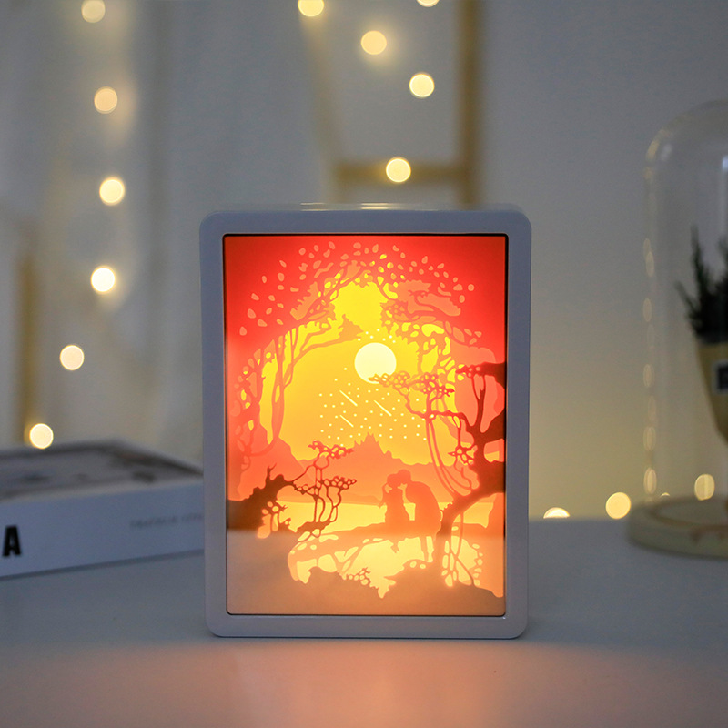 거울 램프 3D 거울 종이 조각 램프 빛 그림자 종이 조각 램프 중공 입체 야간 조명 종이 랜턴 창조적 인 램프 야간 조명스토어 가기