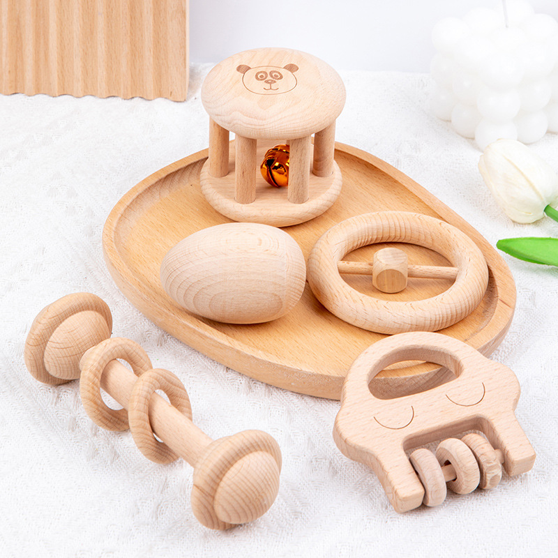 신생아를위한 그림이없는 너도밤 나무 아기 딸랑이 장난감 딸랑이 0-1 세 나무 장난감 선물 상자