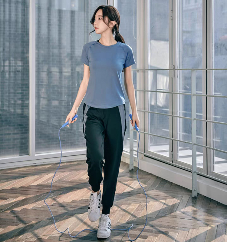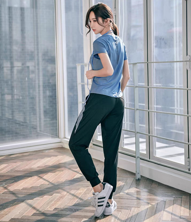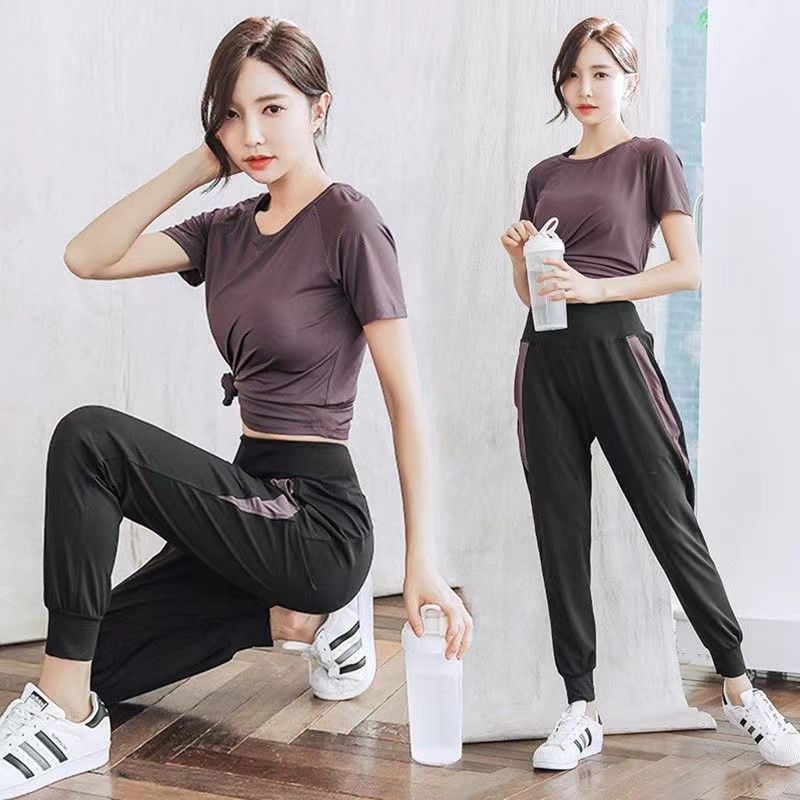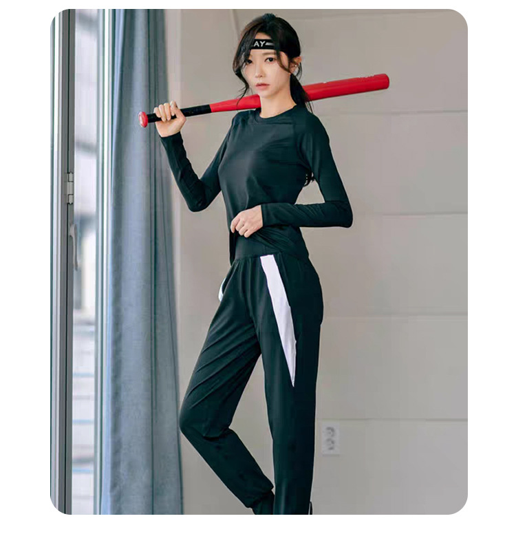 여성을위한 피트니스 스포츠 정장 투피스 세트 느슨한 긴팔 봄 착용 여성 스포츠 러닝 속건 의류 통기성 요가