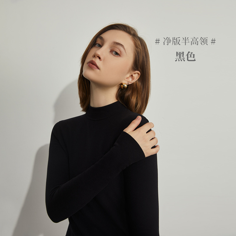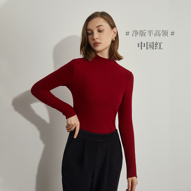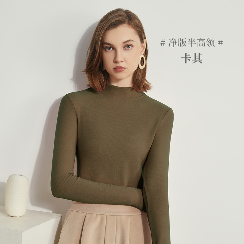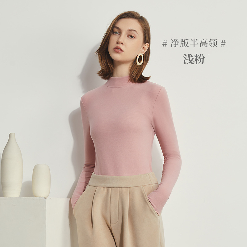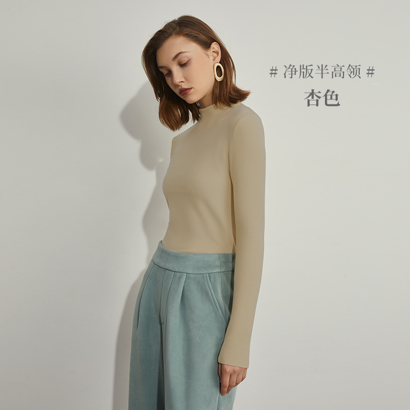 여성용 양털 베이스 셔츠 가을과 겨울 새로운 히알루 론산 열 피부 미용 의류 세미 하이 칼라 따뜻한 슬림 긴 소매 티셔츠