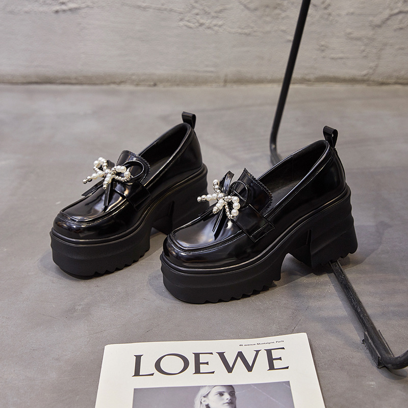 두꺼운 밑창의 영국 스타일 로퍼 여성용 2025 가을 겨울 신상 슬립온 여성화 리본 장식 단화 가죽 신발스토어 가기