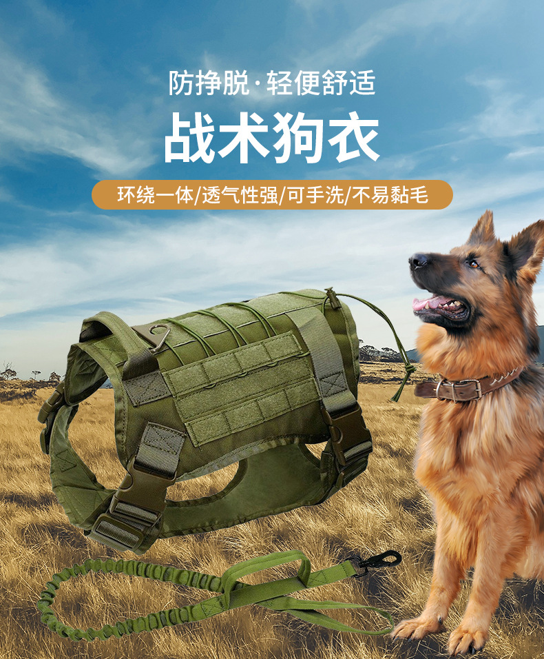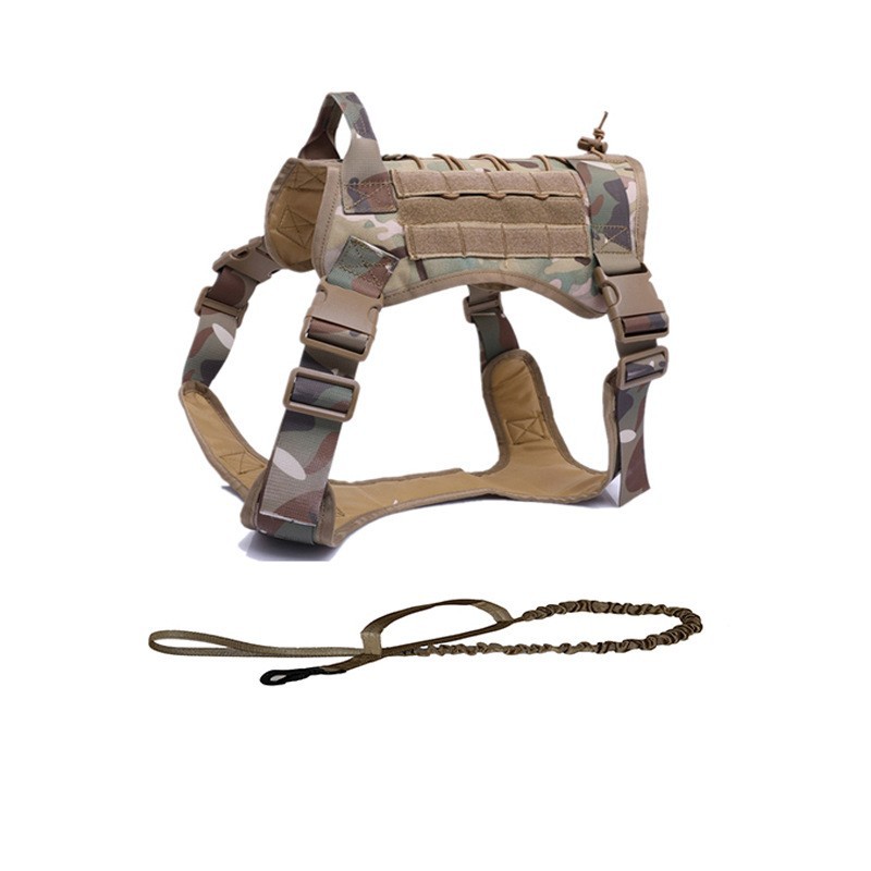 아마존 전술용 강아지 옷 나일론 방수 조끼 야외 위장 애완동물 조끼 강아지 목줄 세트