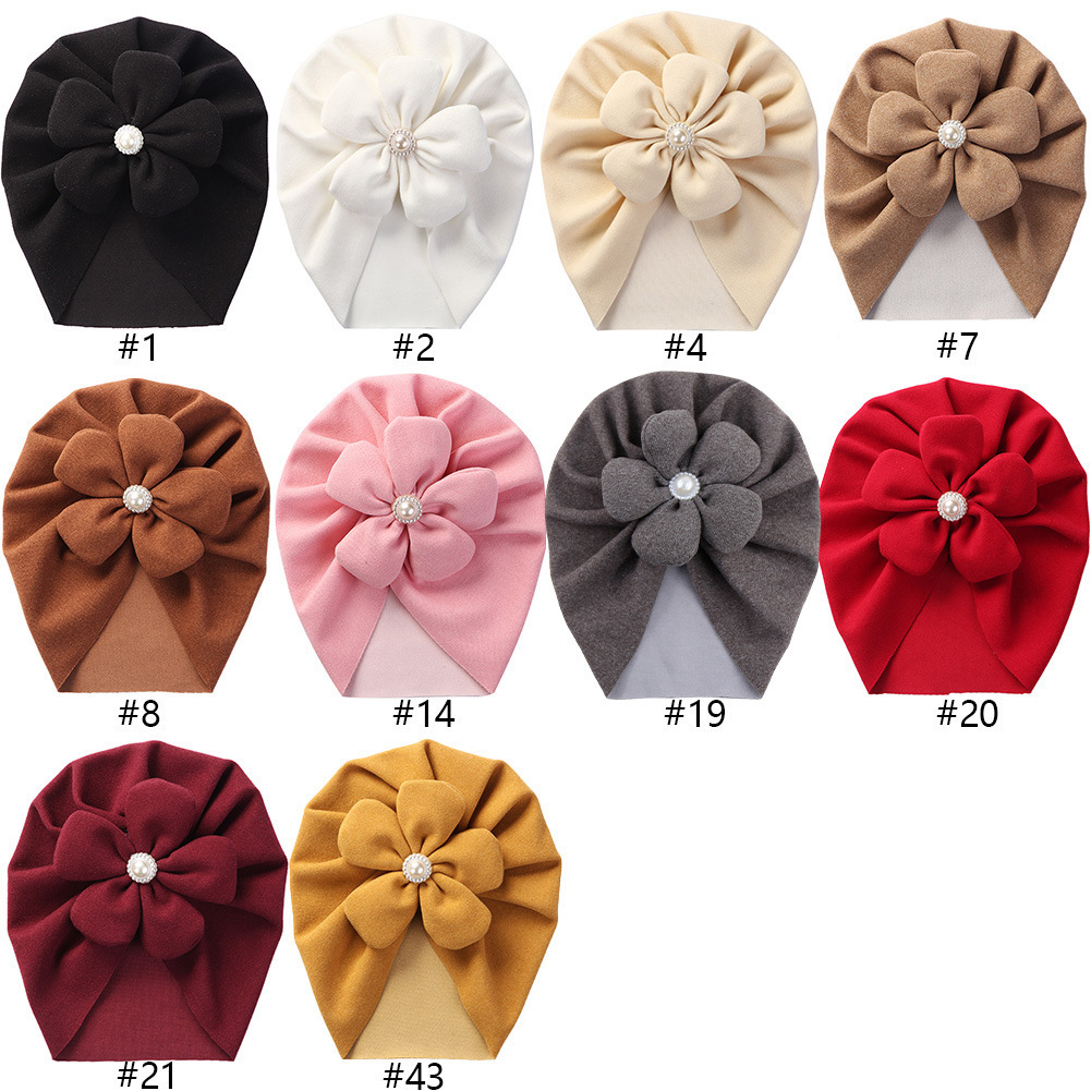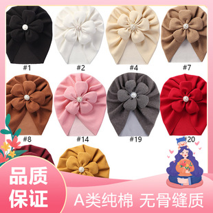 유럽과 미국의 새로운 아기 모자 아기 가을과 겨울 풀오버 모자 모조 캐시미어 어린이 인도 모자 귀여운 꽃 진주 모자