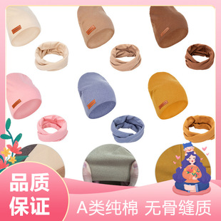 跨境新款儿童纯色套头帽宝宝仿羊绒交叉围脖组合秋冬保暖两件套装