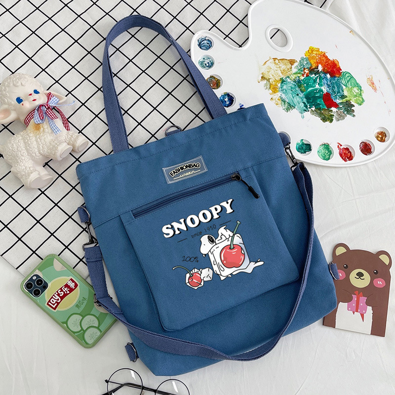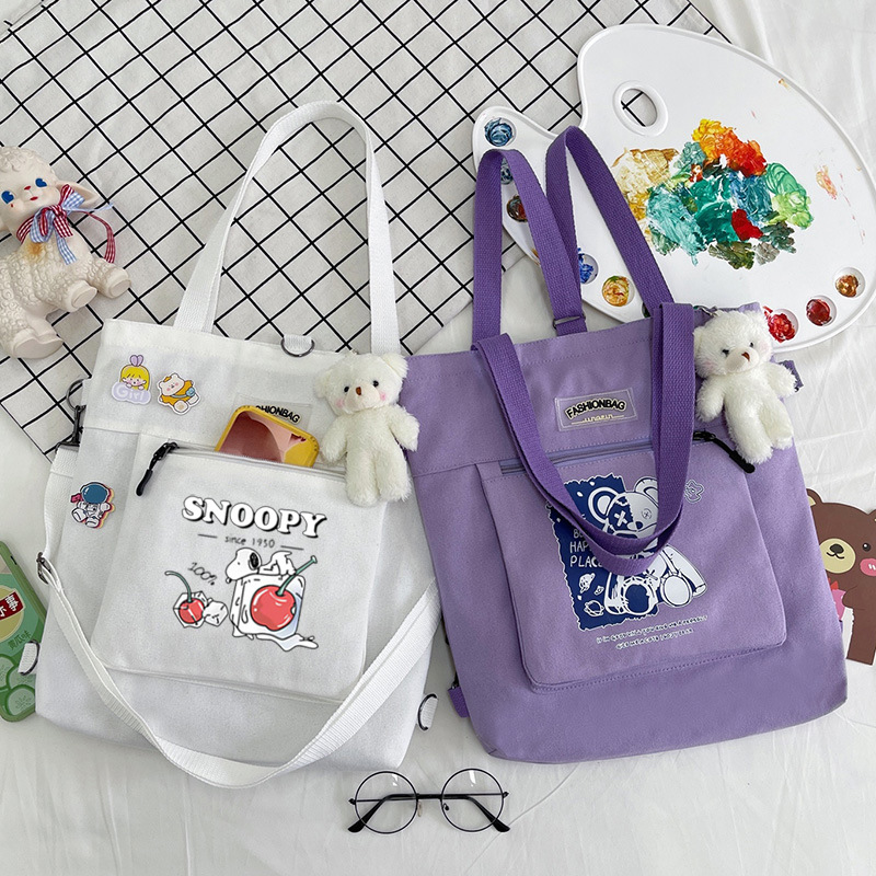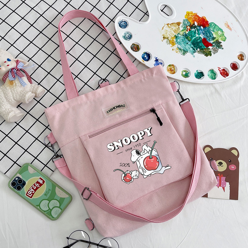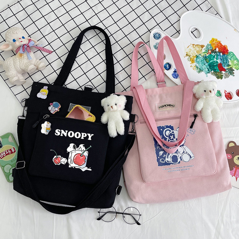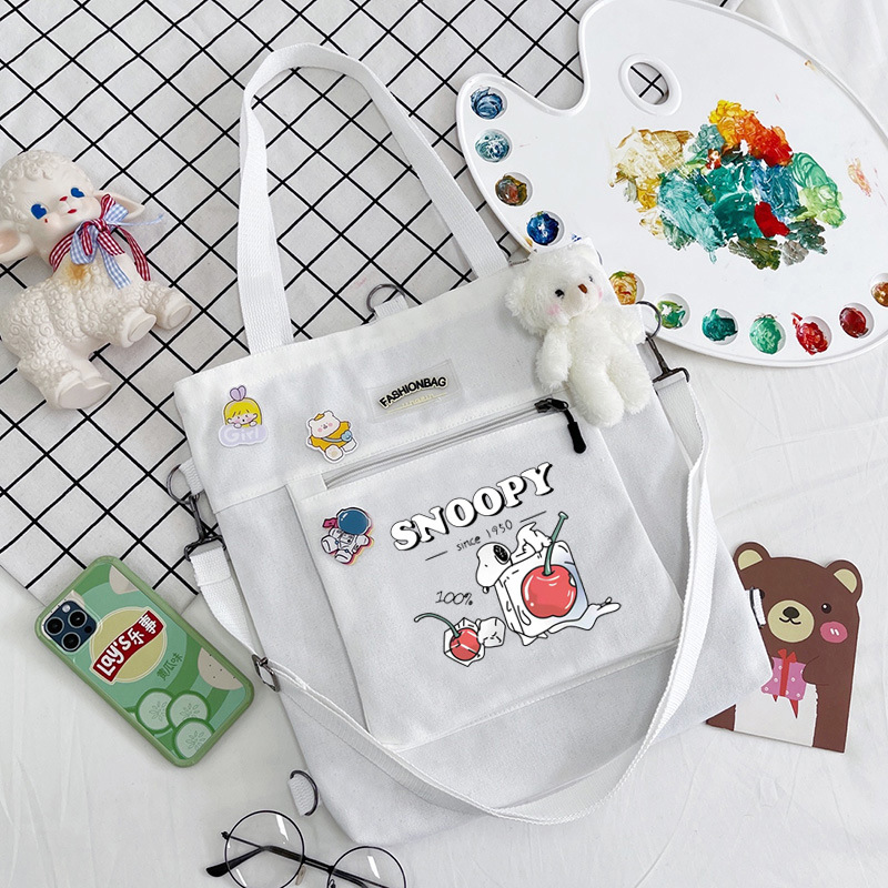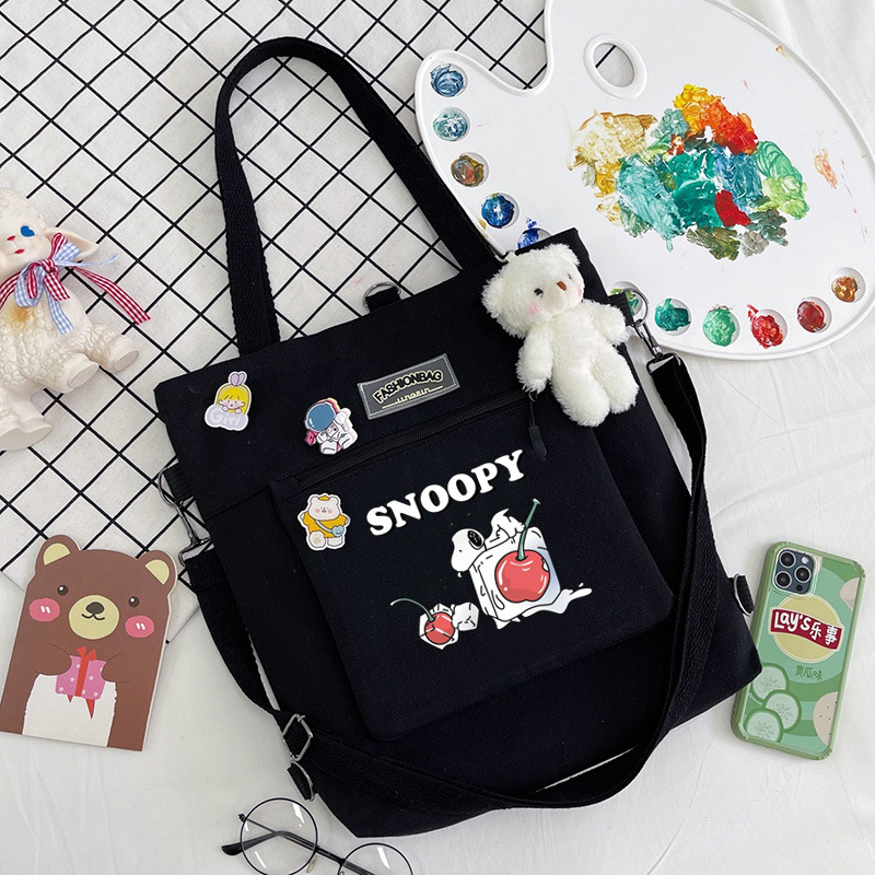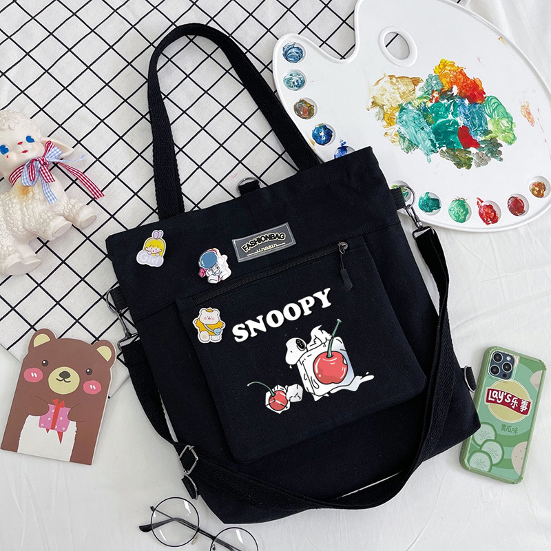 학생 캔버스 가방 여성 체리 스누피 어깨 크로스바디 일본식 학생 캔버스 가방 대용량 핸드백 어깨