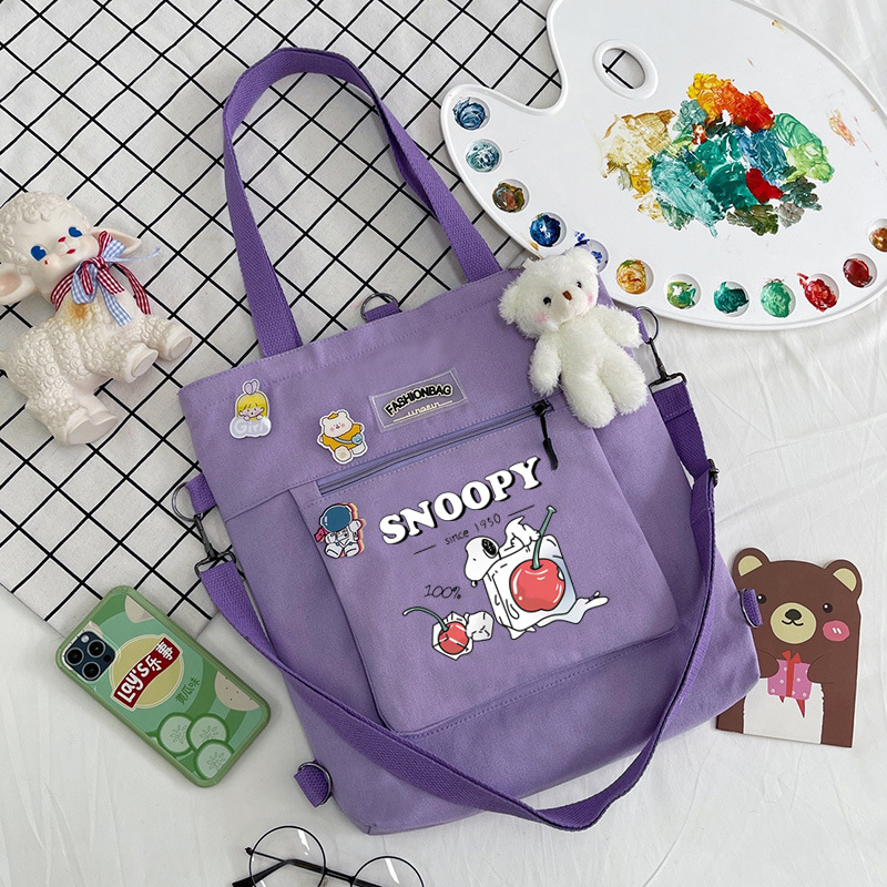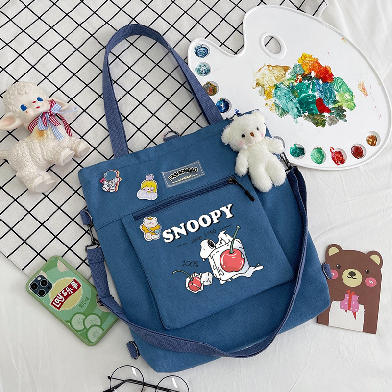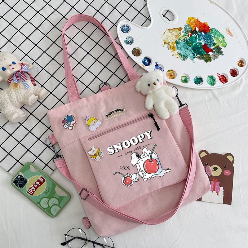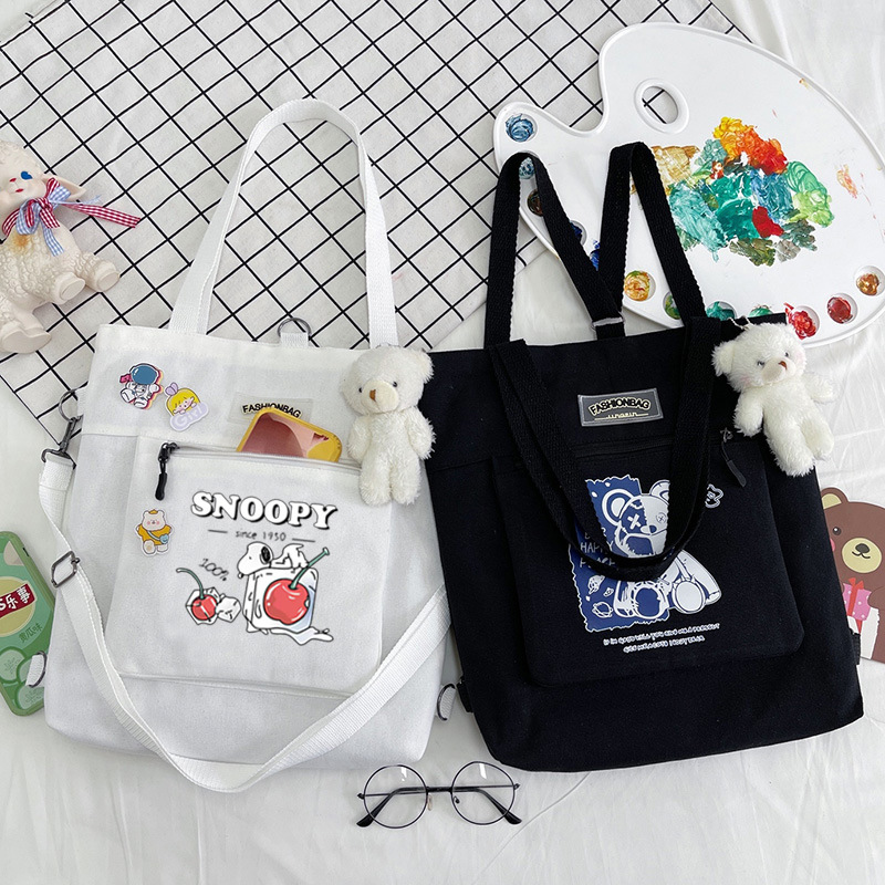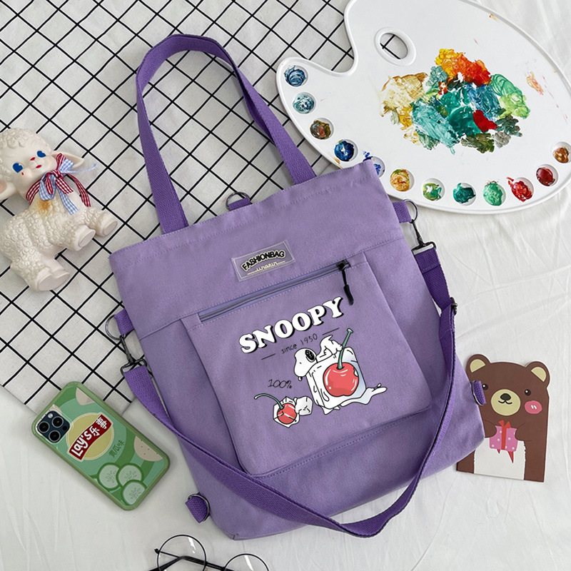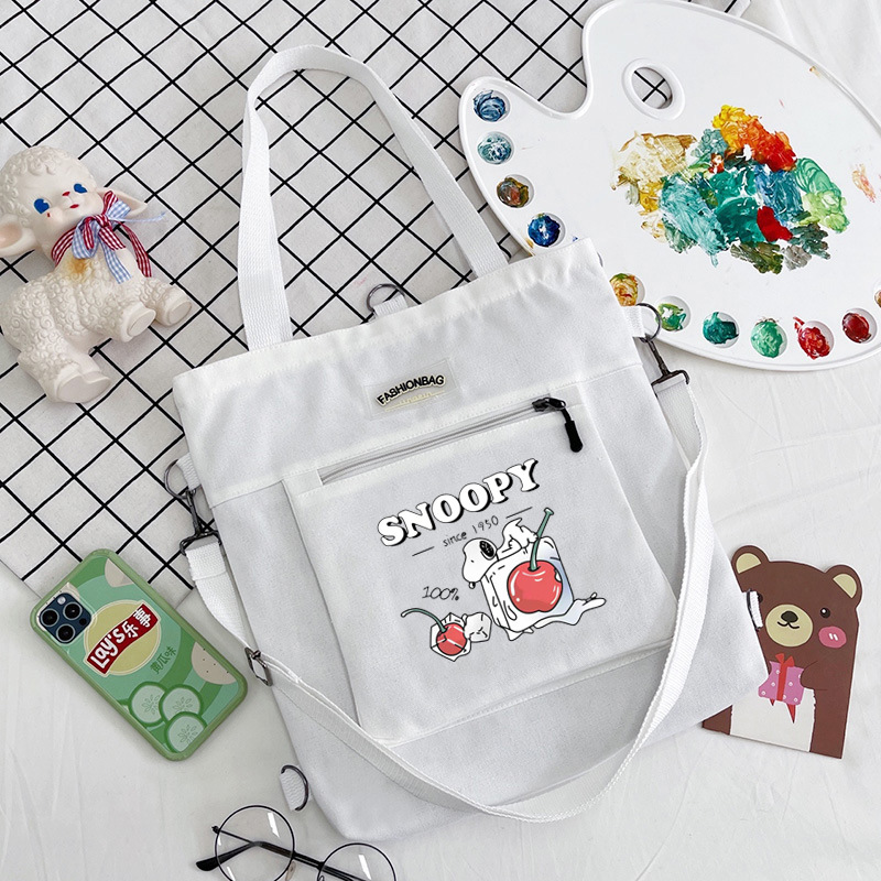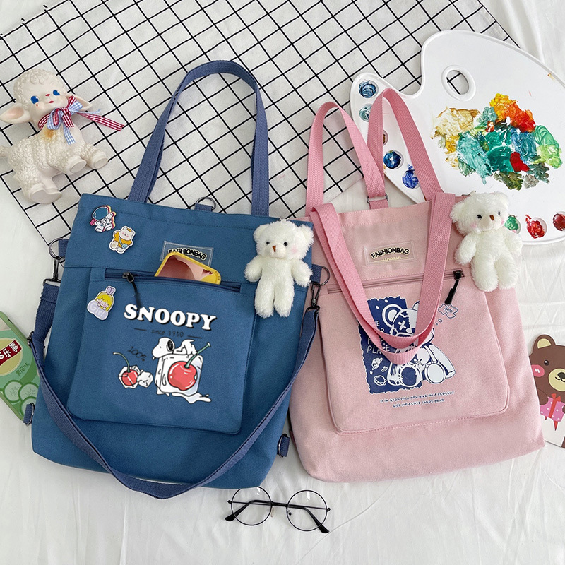 학생 캔버스 가방 여성 체리 스누피 어깨 크로스바디 일본식 학생 캔버스 가방 대용량 핸드백 어깨