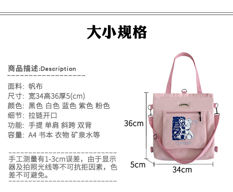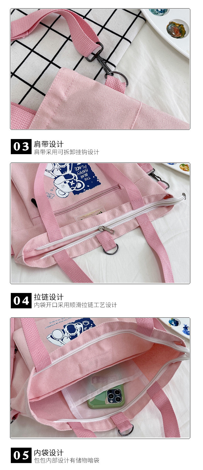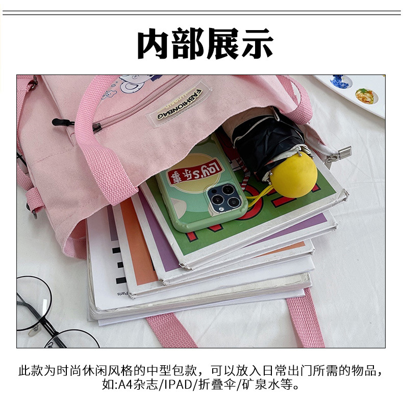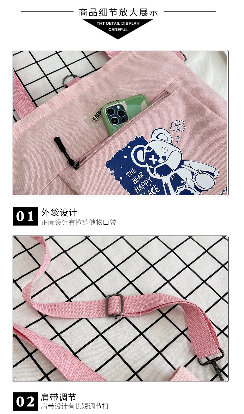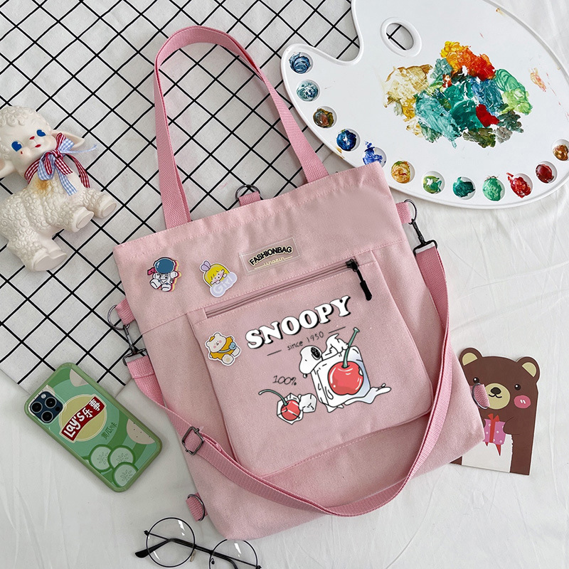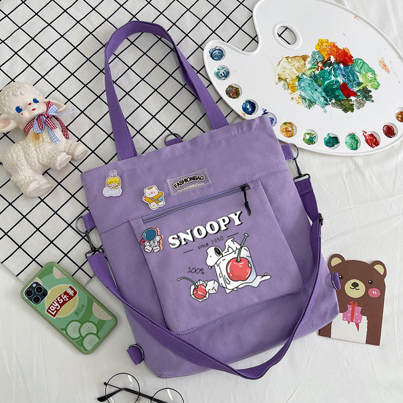 학생 캔버스 가방 여성 체리 스누피 어깨 크로스바디 일본식 학생 캔버스 가방 대용량 핸드백 어깨