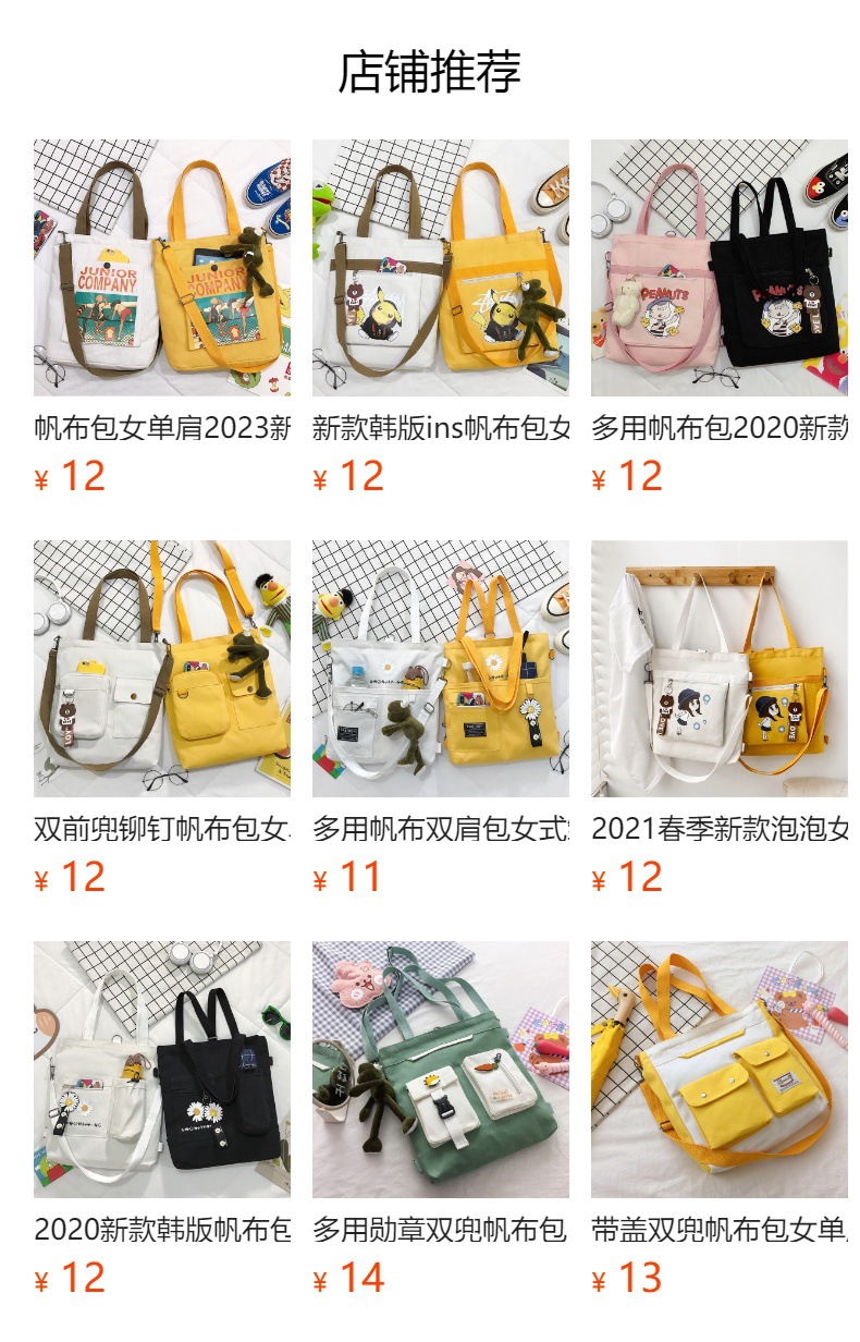 학생 캔버스 가방 여성 체리 스누피 어깨 크로스바디 일본식 학생 캔버스 가방 대용량 핸드백 어깨스토어 가기