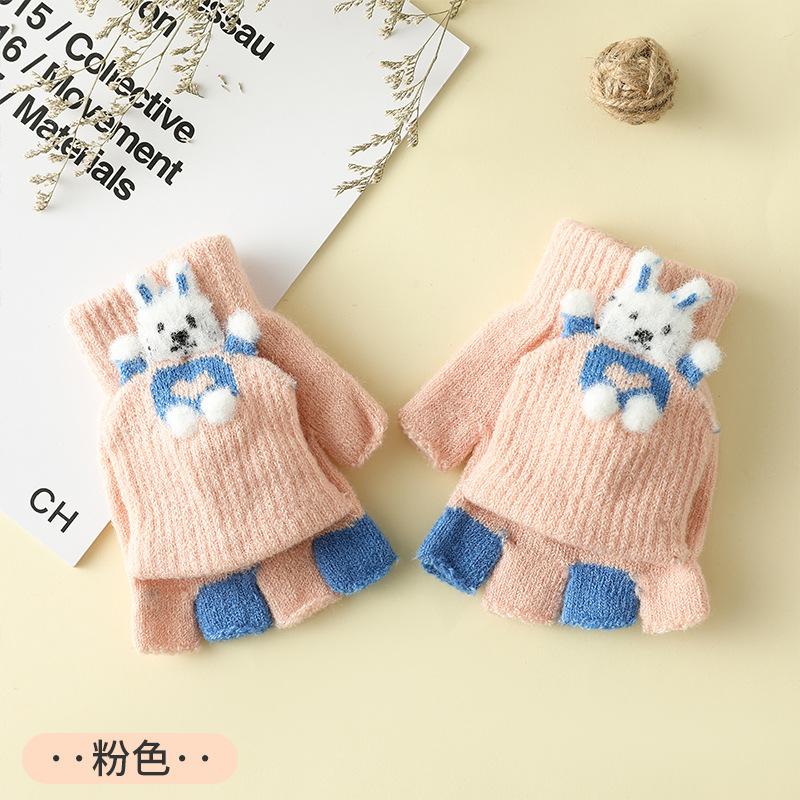 아기 장갑, 어린이용 겨울 방풍 반손가락 플립업 만화 캐릭터 플러시 따뜻한 3-6세용 니트 모조 캐시미어 아동용 모델
