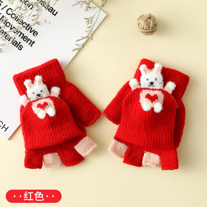 아기 장갑, 어린이용 겨울 방풍 반손가락 플립업 만화 캐릭터 플러시 따뜻한 3-6세용 니트 모조 캐시미어 아동용 모델스토어 가기