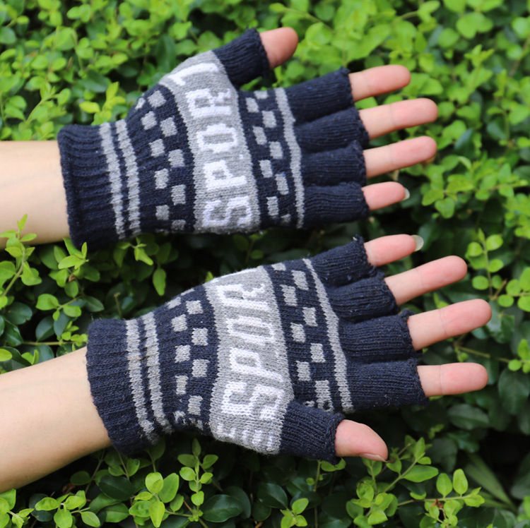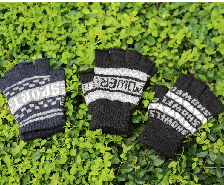 정리 2022 가을과 겨울 남성용 니트 장갑 반 손가락 울 작은 자카드 하프 컷 야외 따뜻한 장갑 아크릴스토어 가기